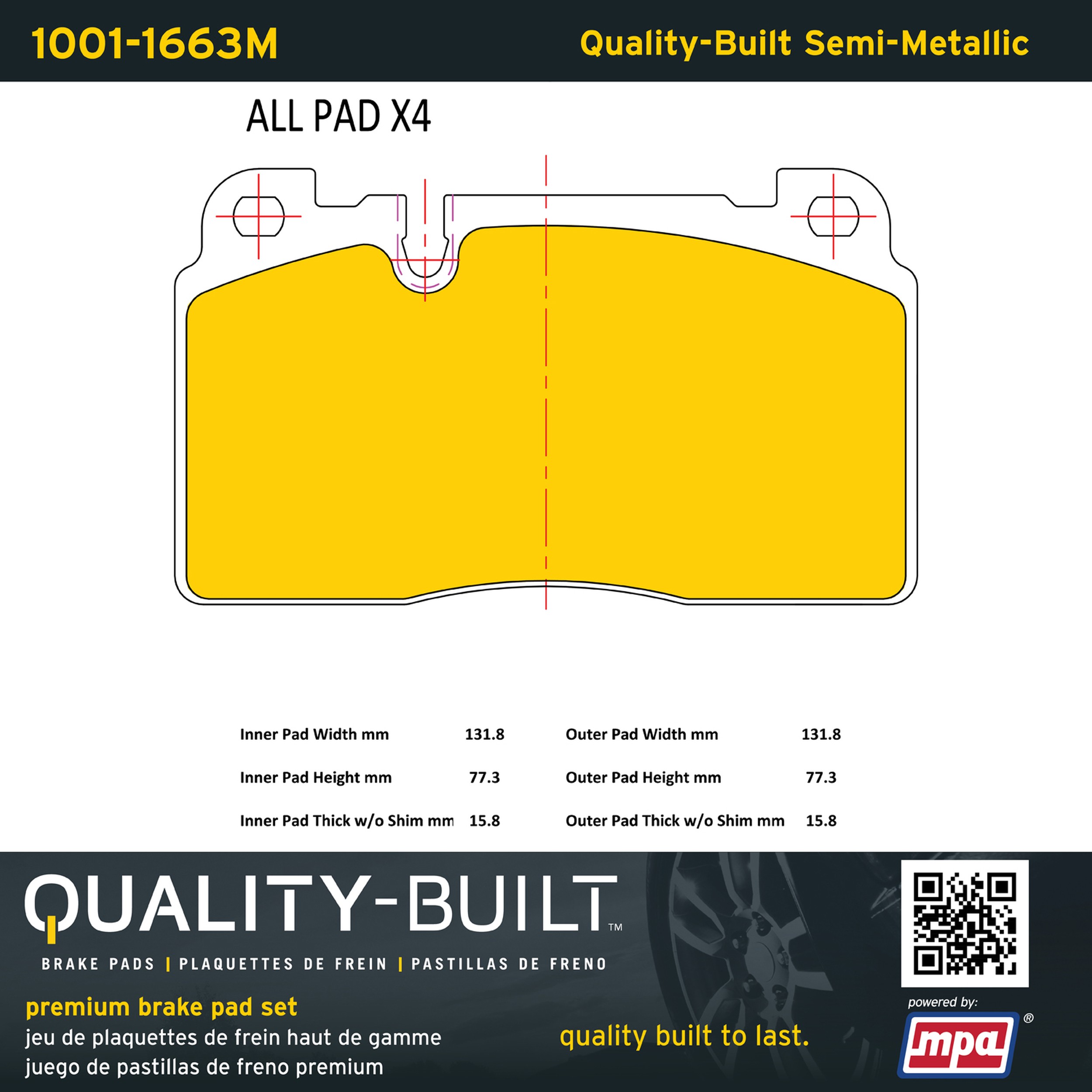 - Quality-Built Premium Semi-Metallic Brake Pads w/ Hardware