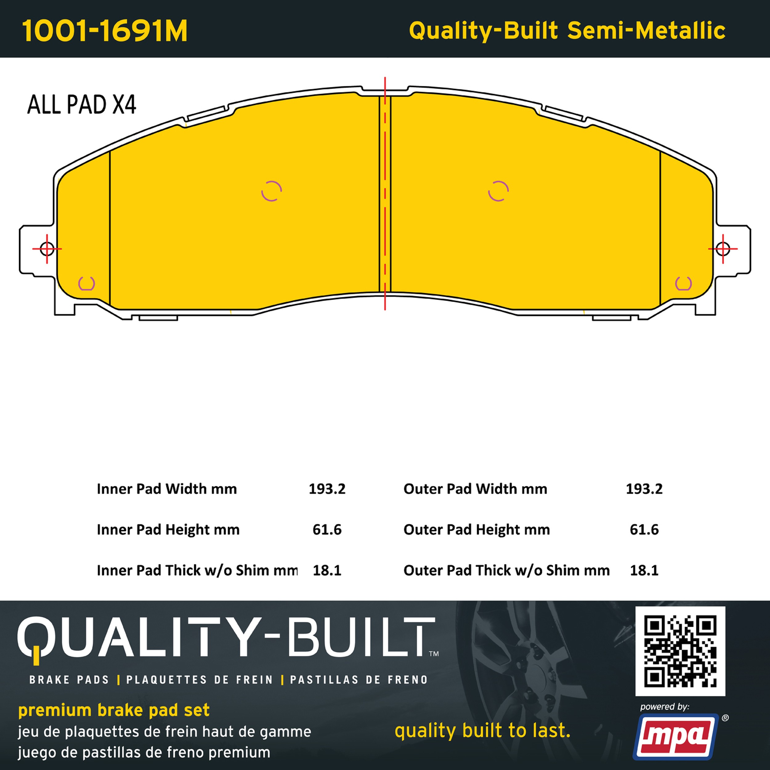 - Quality-Built Premium Brake Pads provide optimized stopping power in all conditions. Application-specific pad formulas remove the guesswork from pad selection by providing friction compounds engineered to restore like-new stopping power for every vehicle. 2025 compliant, copper-free friction formulas deliver dependable performance across a wide thermal range with low brake dust and zero noise.