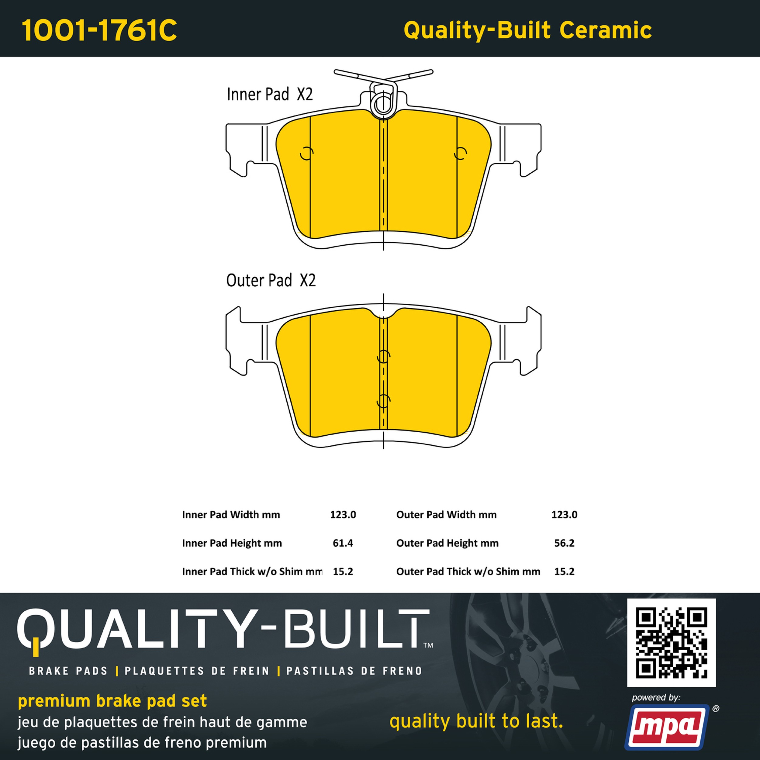 - Quality-Built Premium Ceramic Brake Pads w/ Hardware