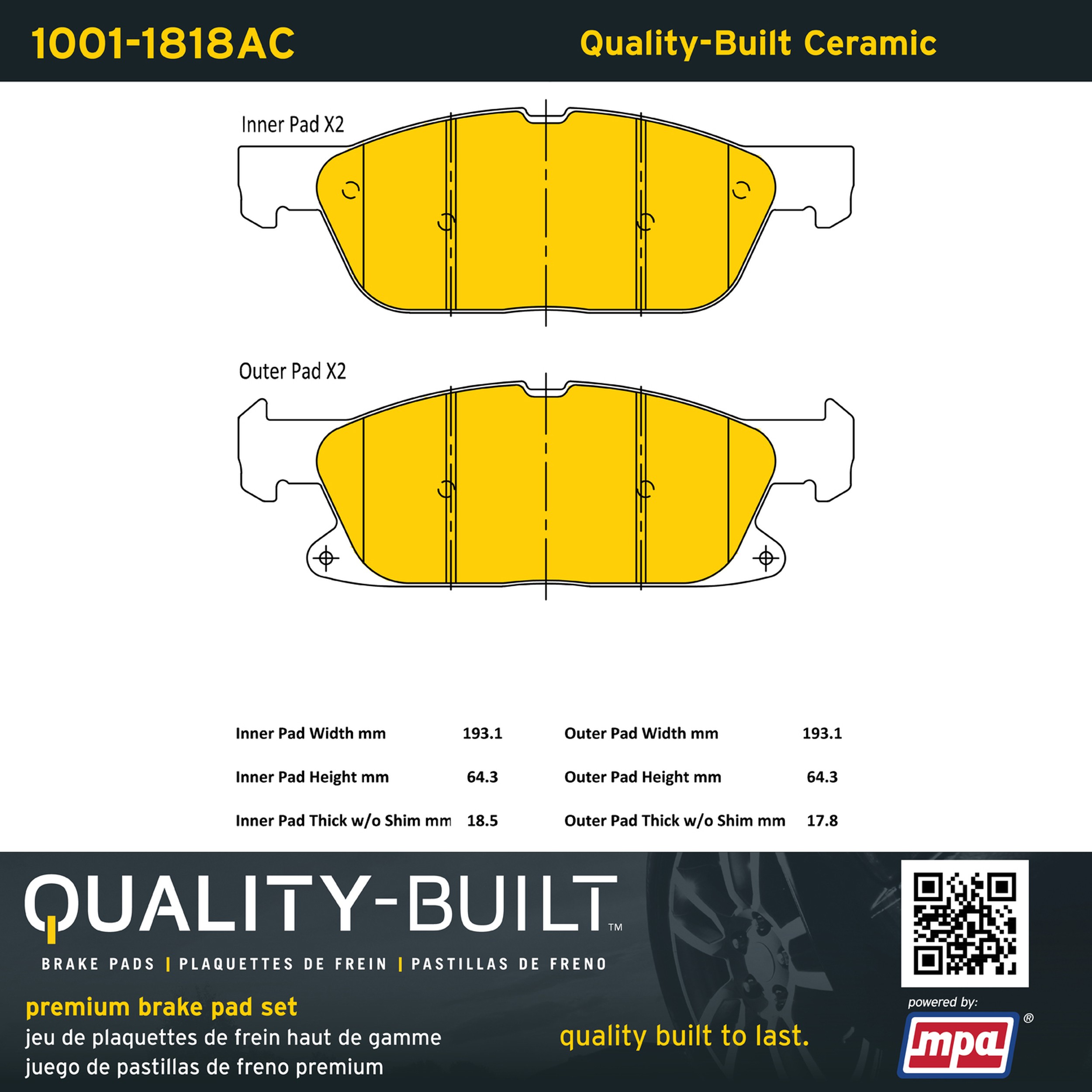 - Quality-Built Premium Brake Pads provide optimized stopping power in all conditions. Application-specific pad formulas remove the guesswork from pad selection by providing friction compounds engineered to restore like-new stopping power for every vehicle. 2025 compliant, copper-free friction formulas deliver dependable performance across a wide thermal range with low brake dust and zero noise.