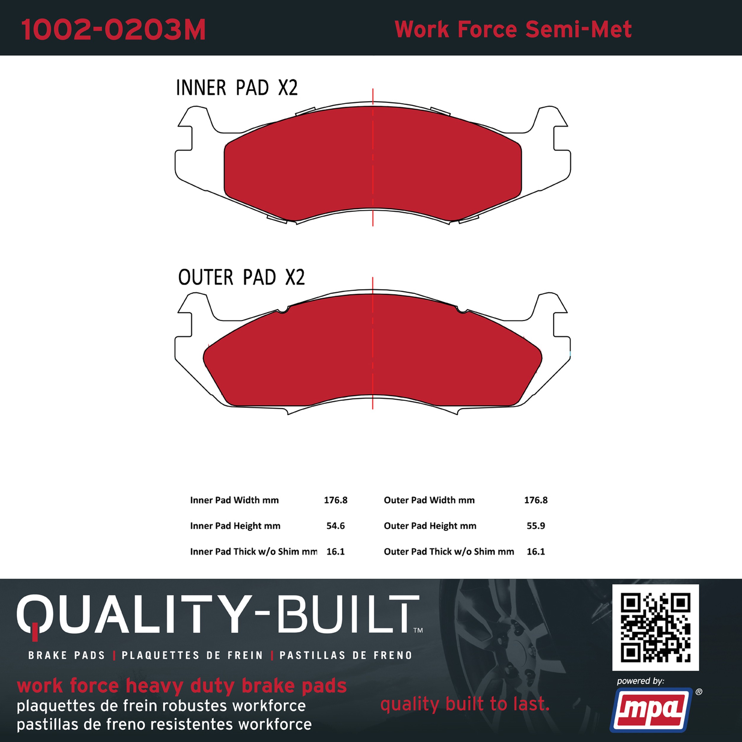 - Hardworking vehicles need hardworking brake pads, and Quality-Built Work force brake pads deliver every time. Specially formulated friction compounds are designed for high heat, heavy-duty use, where repeat stop situations, off-road driving, or towing push brake pads to the limits. Work force brake pads are an excellent choice for fleet use where extended service life and maximum durability are required.