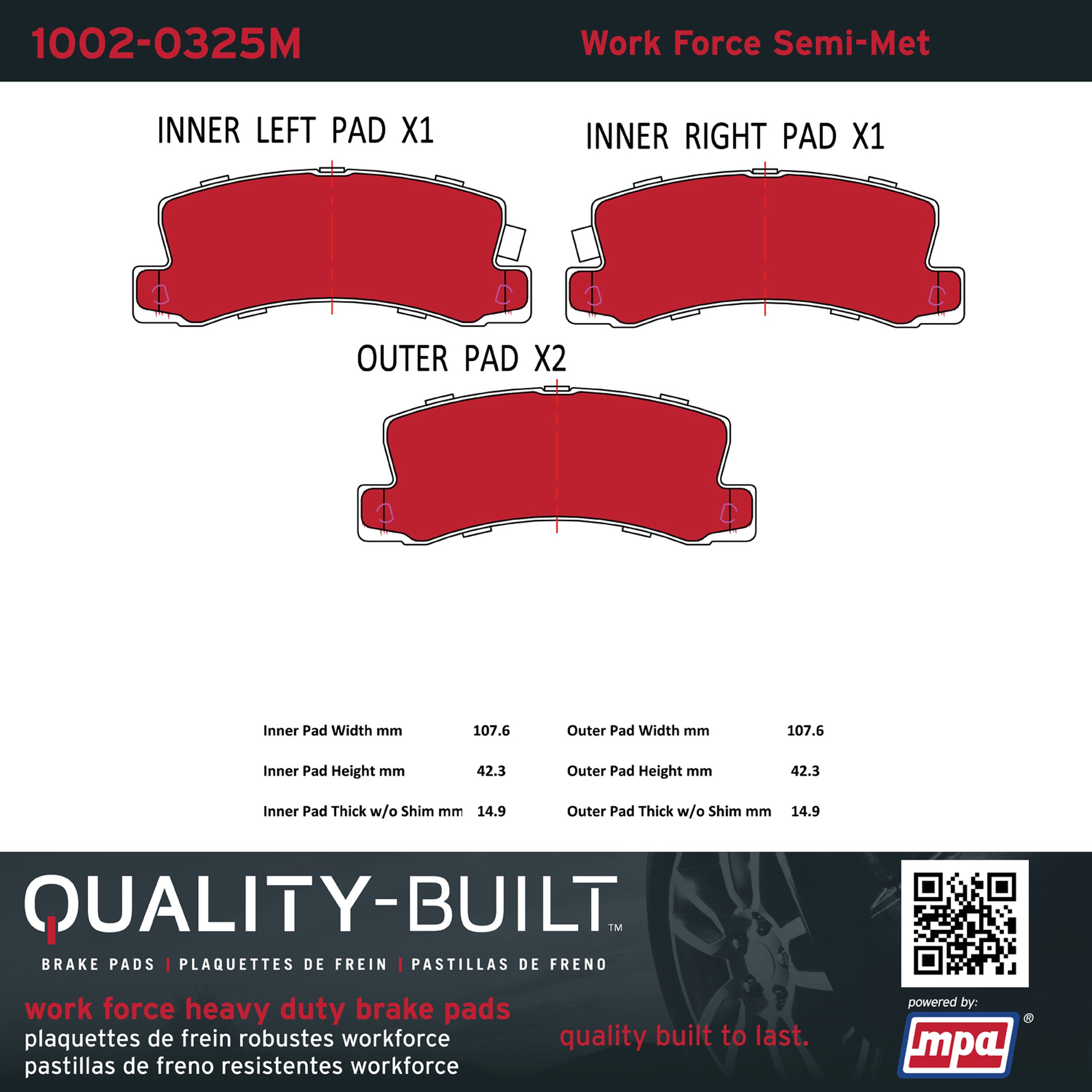 - Hardworking vehicles need hardworking brake pads, and Quality-Built Work force brake pads deliver every time. Specially formulated friction compounds are designed for high heat, heavy-duty use, where repeat stop situations, off-road driving, or towing push brake pads to the limits. Work force brake pads are an excellent choice for fleet use where extended service life and maximum durability are required.