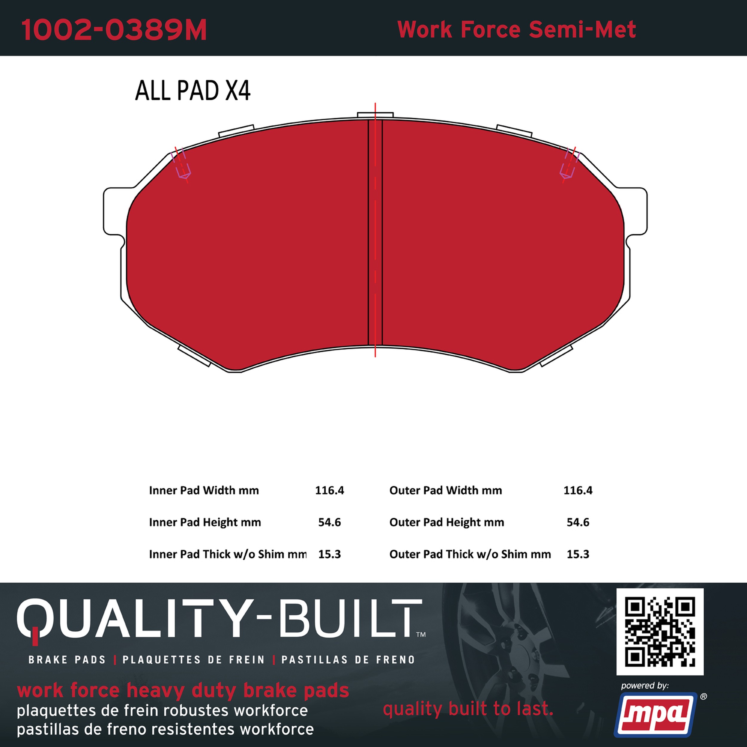 - Hardworking vehicles need hardworking brake pads, and Quality-Built Work force brake pads deliver every time. Specially formulated friction compounds are designed for high heat, heavy-duty use, where repeat stop situations, off-road driving, or towing push brake pads to the limits. Work force brake pads are an excellent choice for fleet use where extended service life and maximum durability are required.