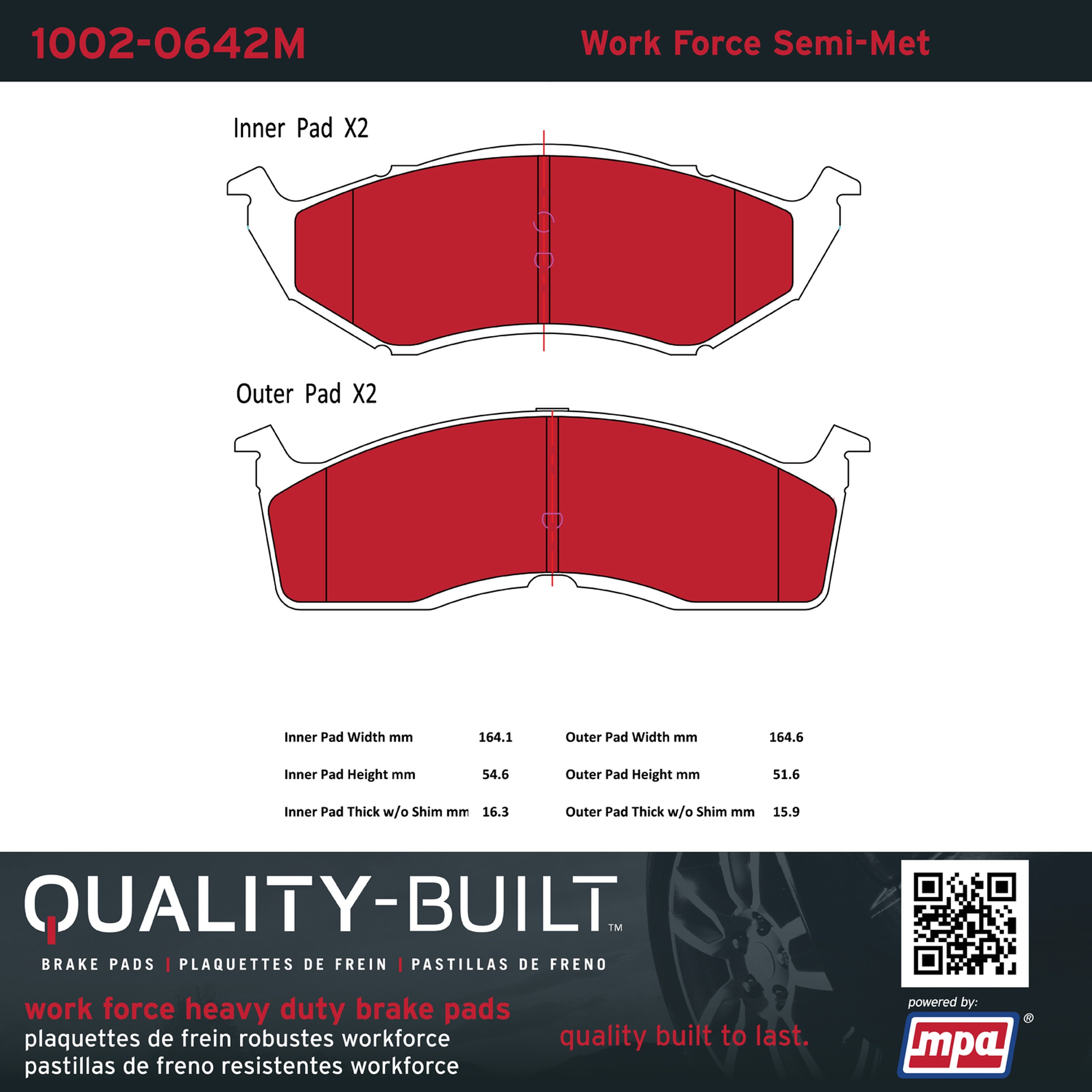 - Hardworking vehicles need hardworking brake pads, and Quality-Built Work force brake pads deliver every time. Specially formulated friction compounds are designed for high heat, heavy-duty use, where repeat stop situations, off-road driving, or towing push brake pads to the limits. Work force brake pads are an excellent choice for fleet use where extended service life and maximum durability are required.