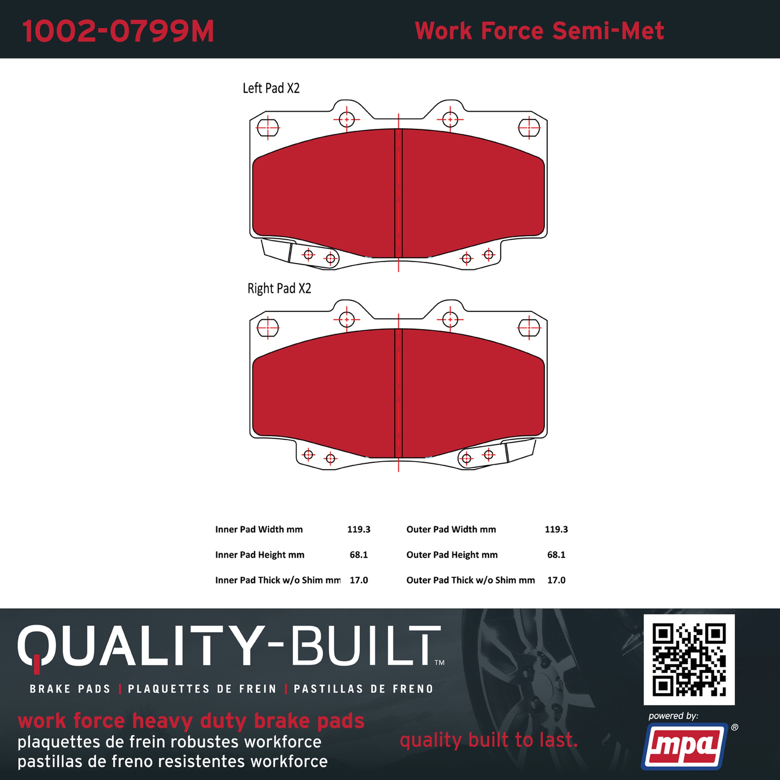 - Hardworking vehicles need hardworking brake pads, and Quality-Built Work force brake pads deliver every time. Specially formulated friction compounds are designed for high heat, heavy-duty use, where repeat stop situations, off-road driving, or towing push brake pads to the limits. Work force brake pads are an excellent choice for fleet use where extended service life and maximum durability are required.