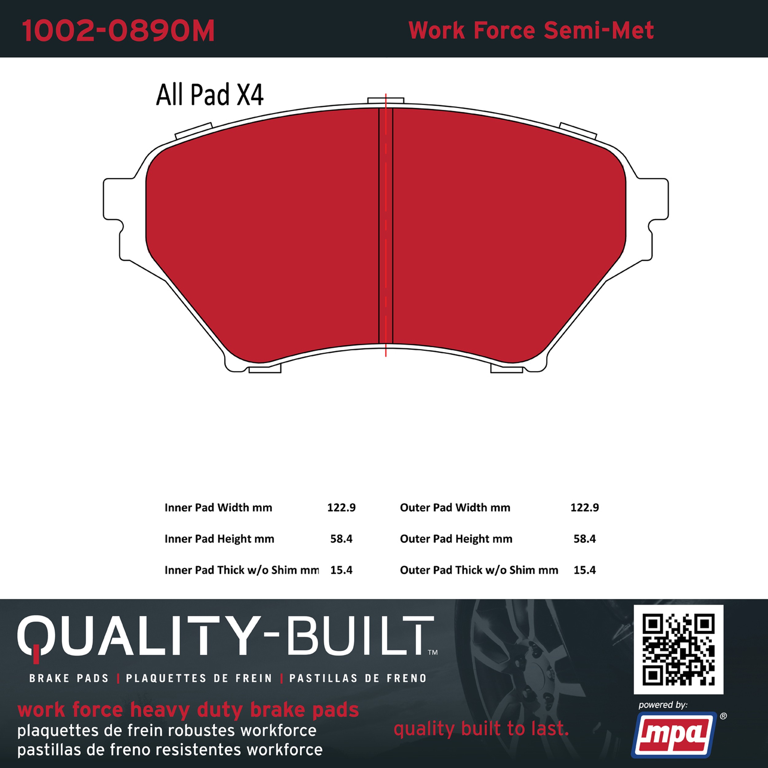 - Hardworking vehicles need hardworking brake pads, and Quality-Built Work force brake pads deliver every time. Specially formulated friction compounds are designed for high heat, heavy-duty use, where repeat stop situations, off-road driving, or towing push brake pads to the limits. Work force brake pads are an excellent choice for fleet use where extended service life and maximum durability are required.
