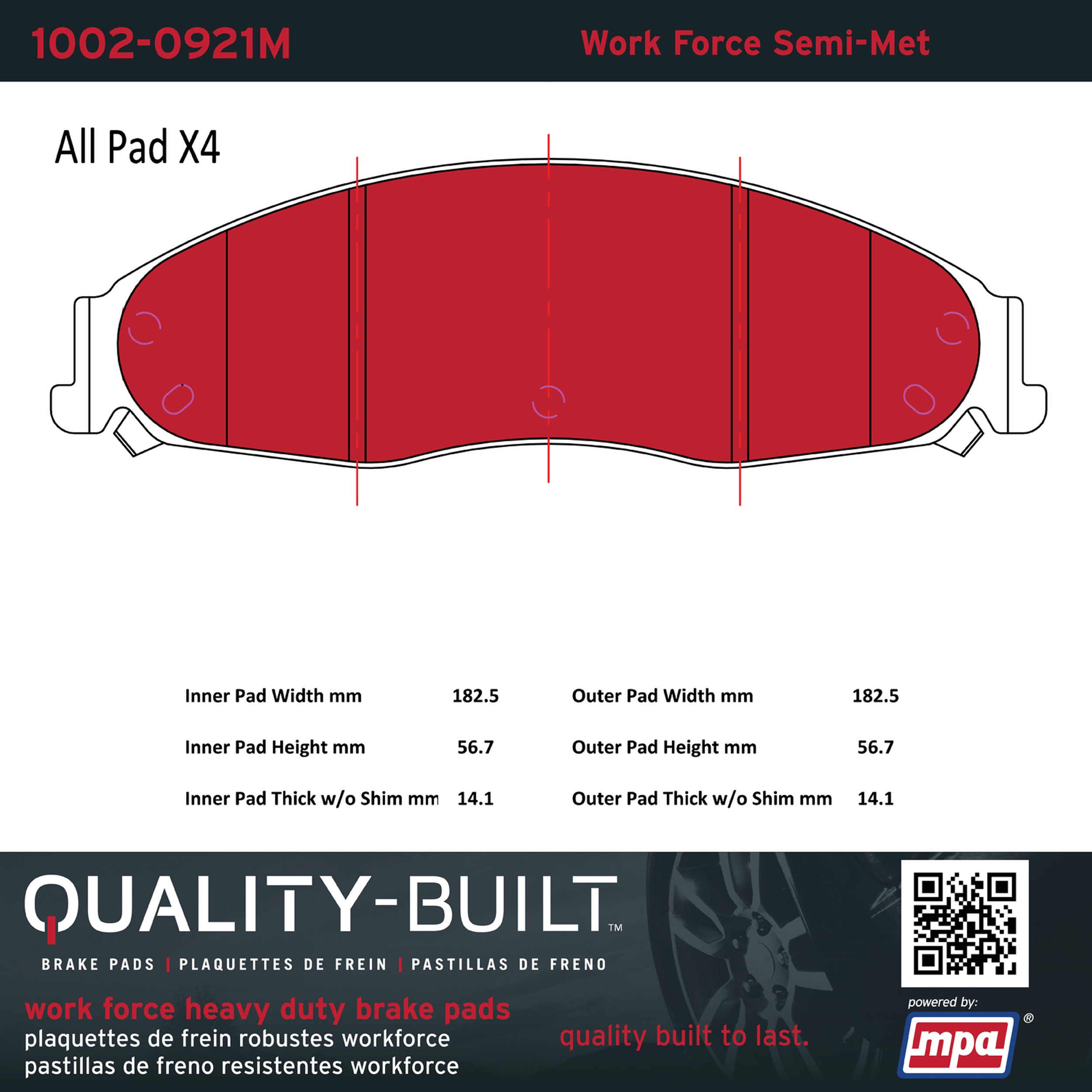 - Hardworking vehicles need hardworking brake pads, and Quality-Built Work force brake pads deliver every time. Specially formulated friction compounds are designed for high heat, heavy-duty use, where repeat stop situations, off-road driving, or towing push brake pads to the limits. Work force brake pads are an excellent choice for fleet use where extended service life and maximum durability are required.