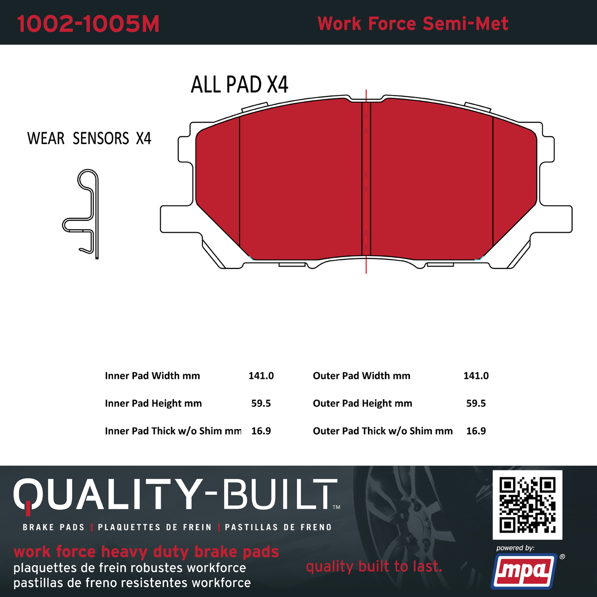 - Hardworking vehicles need hardworking brake pads, and Quality-Built Work force brake pads deliver every time. Specially formulated friction compounds are designed for high heat, heavy-duty use, where repeat stop situations, off-road driving, or towing push brake pads to the limits. Work force brake pads are an excellent choice for fleet use where extended service life and maximum durability are required.