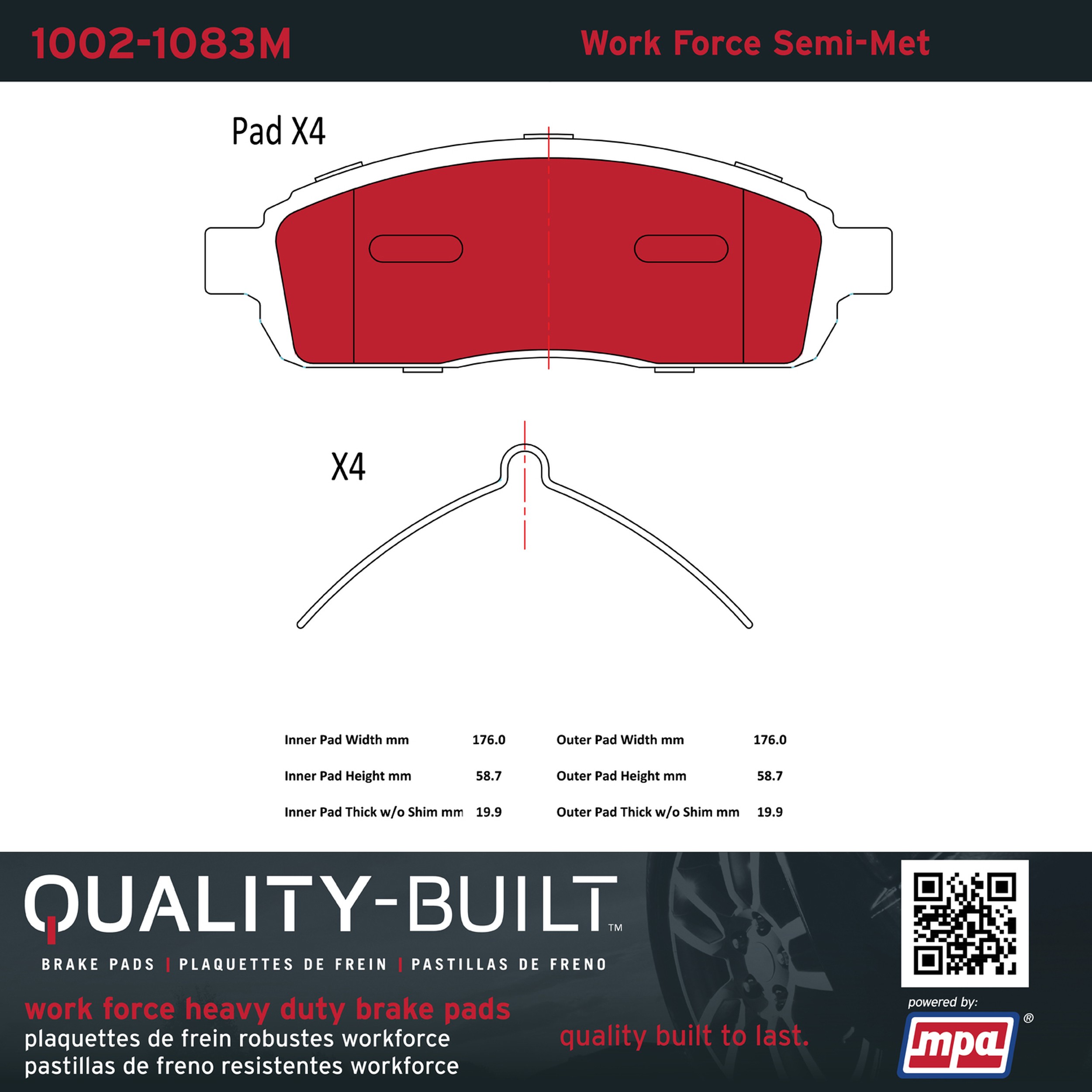 - Hardworking vehicles need hardworking brake pads, and Quality-Built Work force brake pads deliver every time. Specially formulated friction compounds are designed for high heat, heavy-duty use, where repeat stop situations, off-road driving, or towing push brake pads to the limits. Work force brake pads are an excellent choice for fleet use where extended service life and maximum durability are required.