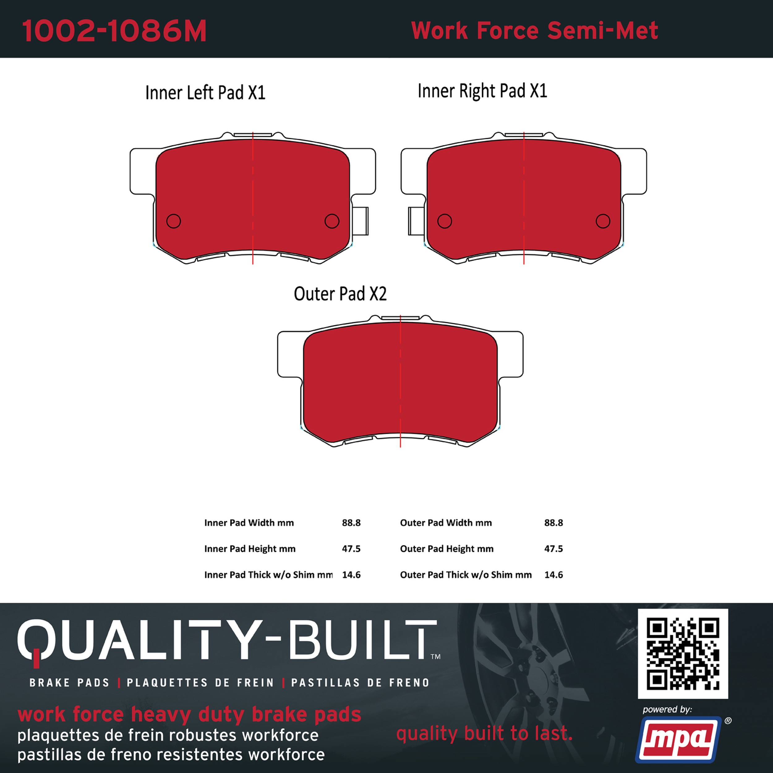 - Hardworking vehicles need hardworking brake pads, and Quality-Built Work force brake pads deliver every time. Specially formulated friction compounds are designed for high heat, heavy-duty use, where repeat stop situations, off-road driving, or towing push brake pads to the limits. Work force brake pads are an excellent choice for fleet use where extended service life and maximum durability are required.