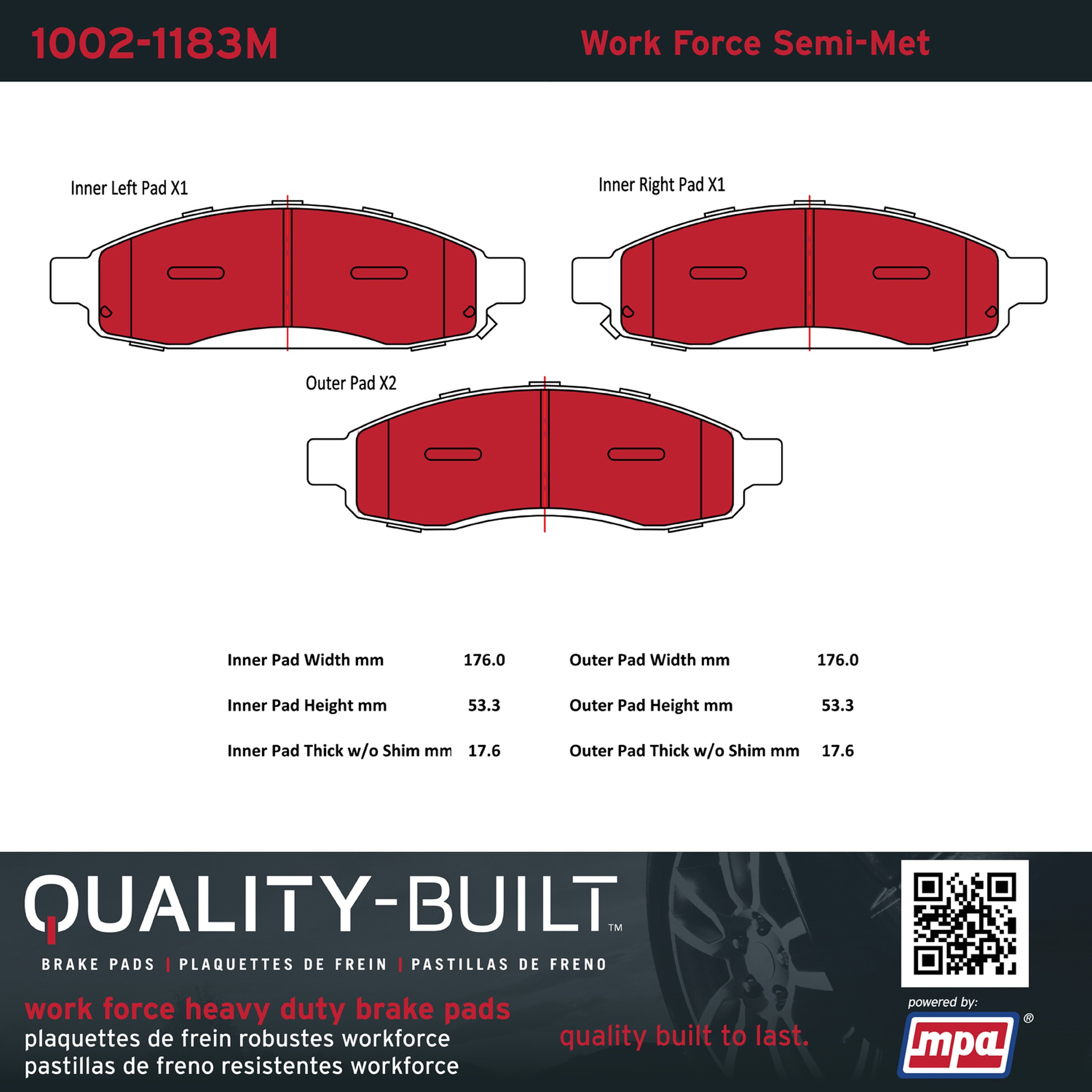 - Hardworking vehicles need hardworking brake pads, and Quality-Built Work force brake pads deliver every time. Specially formulated friction compounds are designed for high heat, heavy-duty use, where repeat stop situations, off-road driving, or towing push brake pads to the limits. Work force brake pads are an excellent choice for fleet use where extended service life and maximum durability are required.