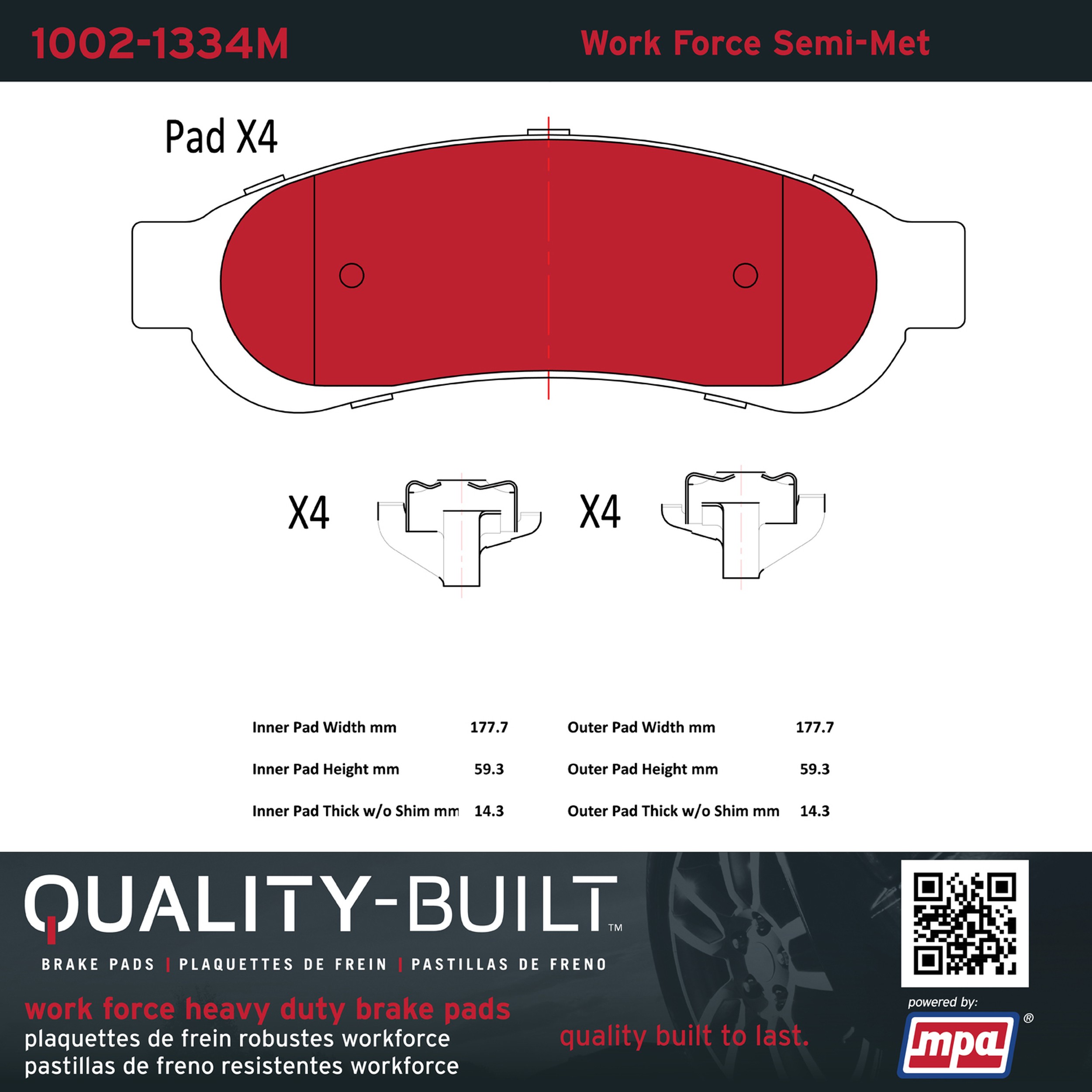 - Hardworking vehicles need hardworking brake pads, and Quality-Built Work force brake pads deliver every time. Specially formulated friction compounds are designed for high heat, heavy-duty use, where repeat stop situations, off-road driving, or towing push brake pads to the limits. Work force brake pads are an excellent choice for fleet use where extended service life and maximum durability are required.