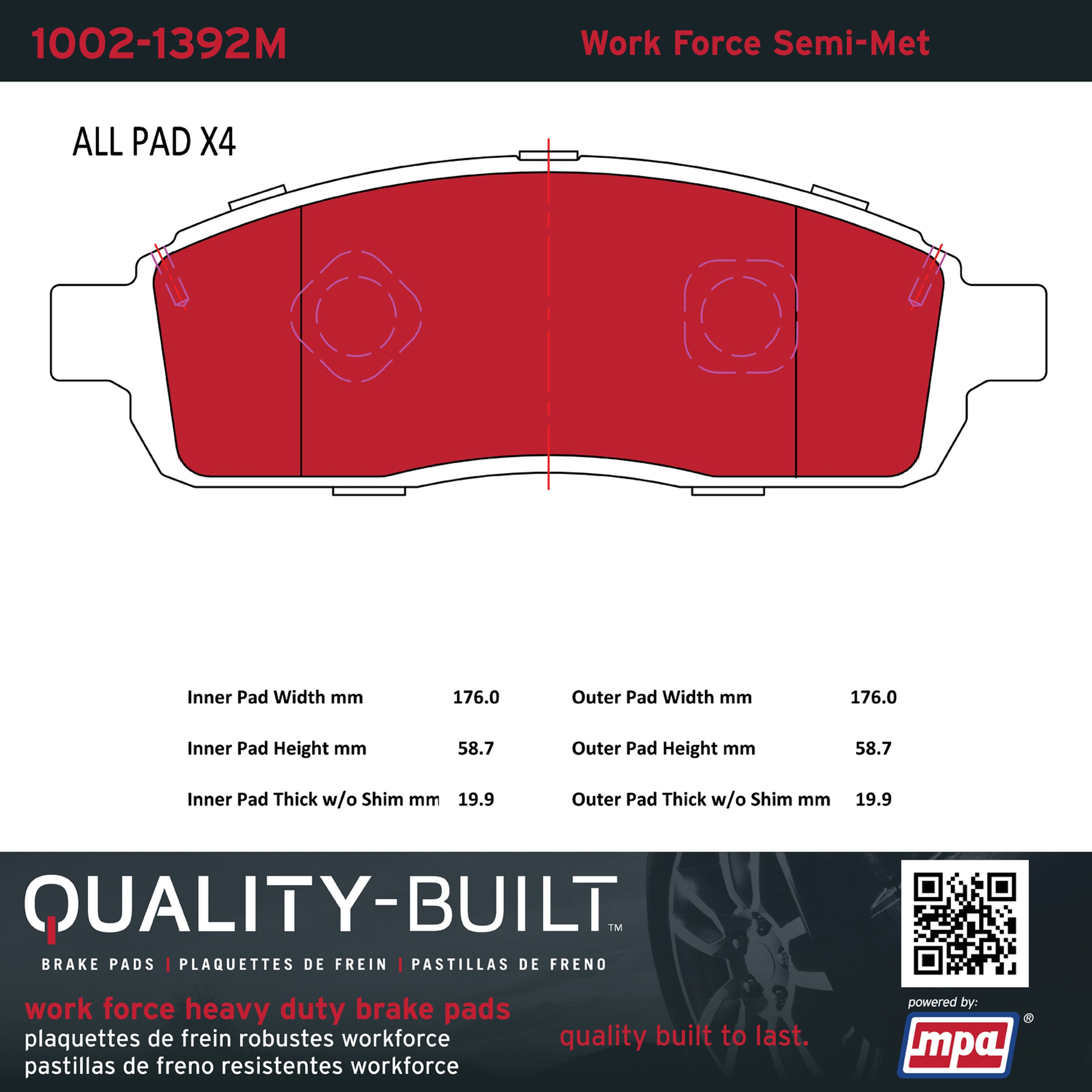- Hardworking vehicles need hardworking brake pads, and Quality-Built Work force brake pads deliver every time. Specially formulated friction compounds are designed for high heat, heavy-duty use, where repeat stop situations, off-road driving, or towing push brake pads to the limits. Work force brake pads are an excellent choice for fleet use where extended service life and maximum durability are required.