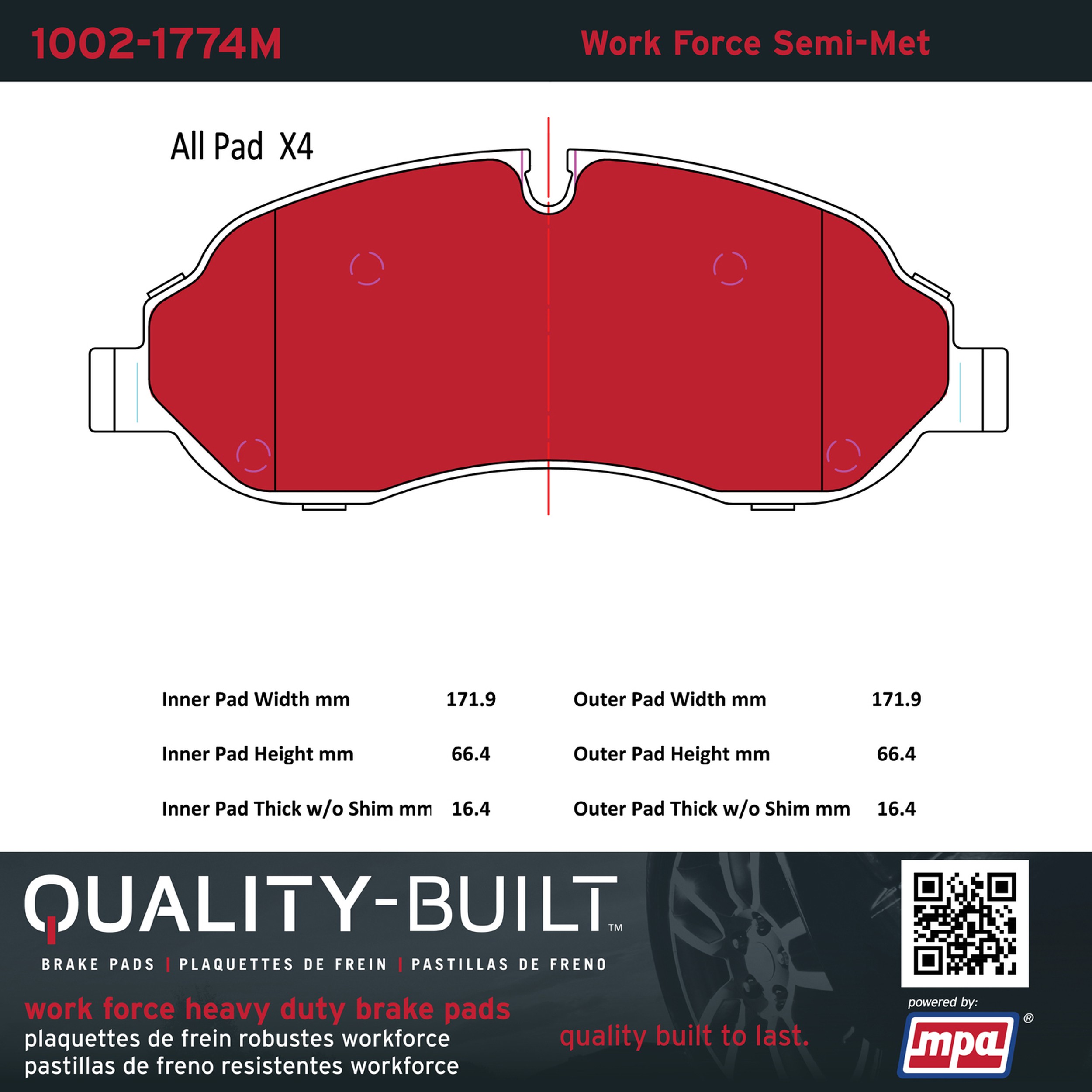 - Hardworking vehicles need hardworking brake pads, and Quality-Built Work force brake pads deliver every time. Specially formulated friction compounds are designed for high heat, heavy-duty use, where repeat stop situations, off-road driving, or towing push brake pads to the limits. Work force brake pads are an excellent choice for fleet use where extended service life and maximum durability are required.