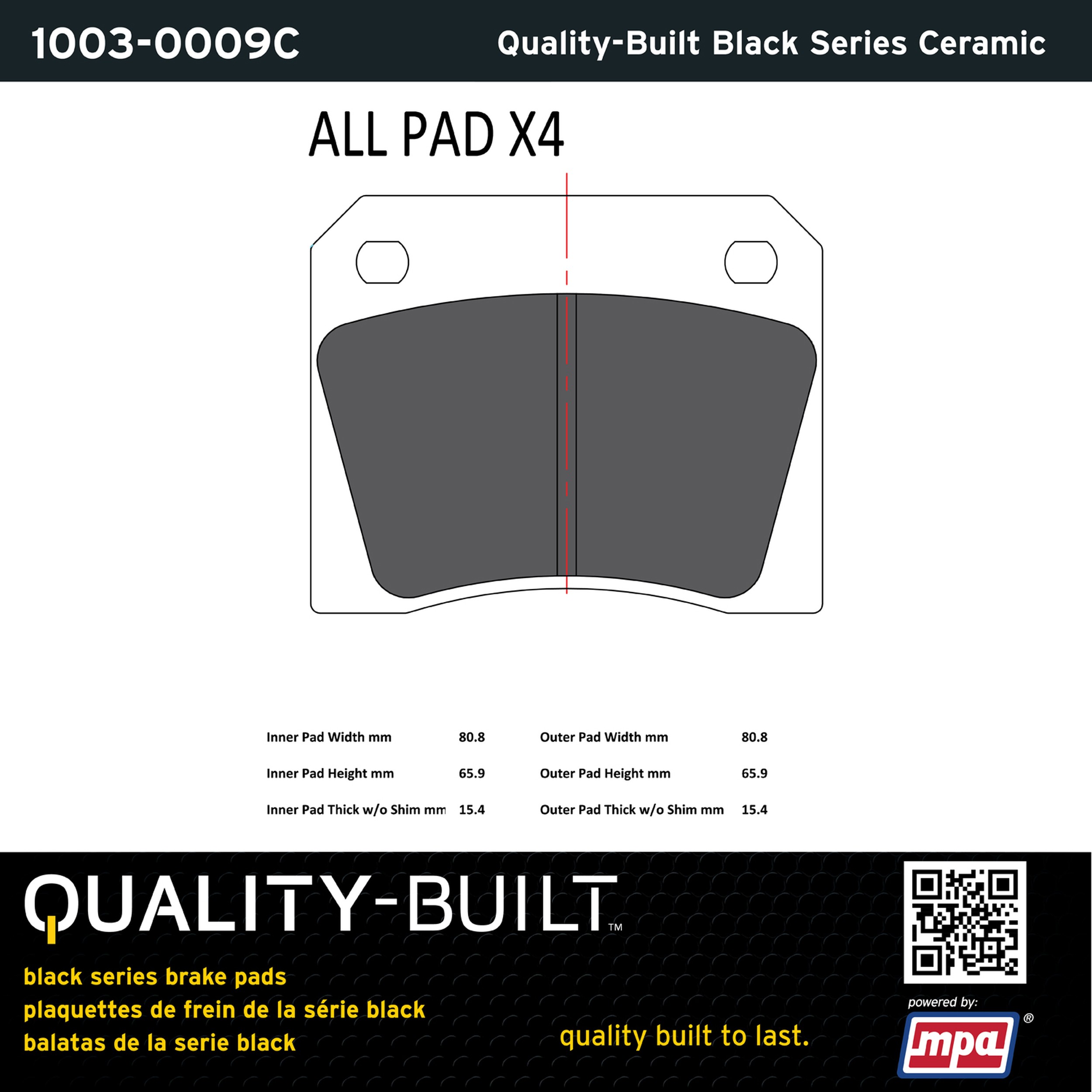 - Quality-Built Black Series Brake Pads are the ultimate in brake pad performance, delivering smooth, reliable stopping with zero noise and low dust. Application-specific friction formulas take the guesswork out of pad selection while providing even, predictable pedal feel and fade-free stopping power across a wide thermal range. Black Series friction compounds are engineered for optimized brake system performance and improved stopping power.
