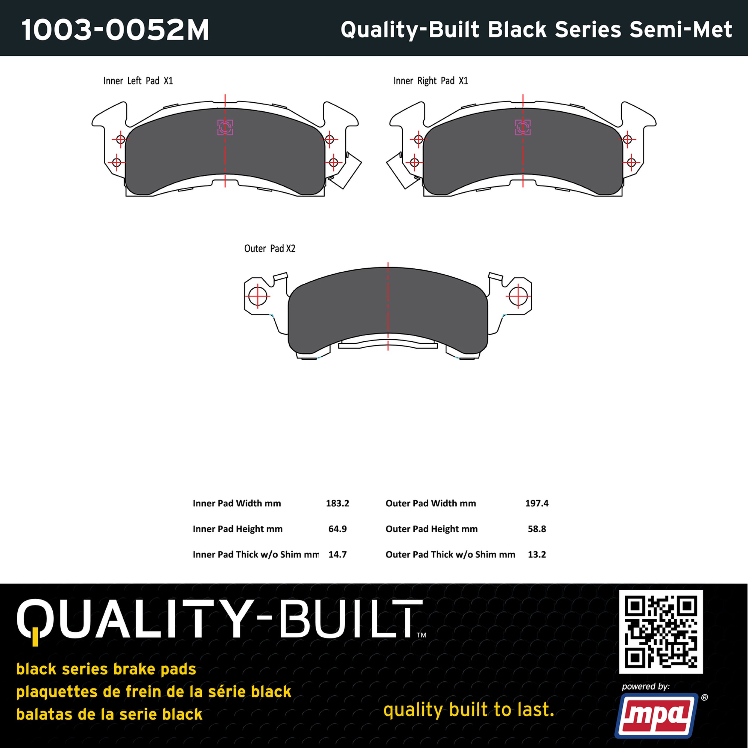 - Quality-Built Black Series Brake Pads are the ultimate in brake pad performance, delivering smooth, reliable stopping with zero noise and low dust. Application-specific friction formulas take the guesswork out of pad selection while providing even, predictable pedal feel and fade-free stopping power across a wide thermal range. Black Series friction compounds are engineered for optimized brake system performance and improved stopping power.