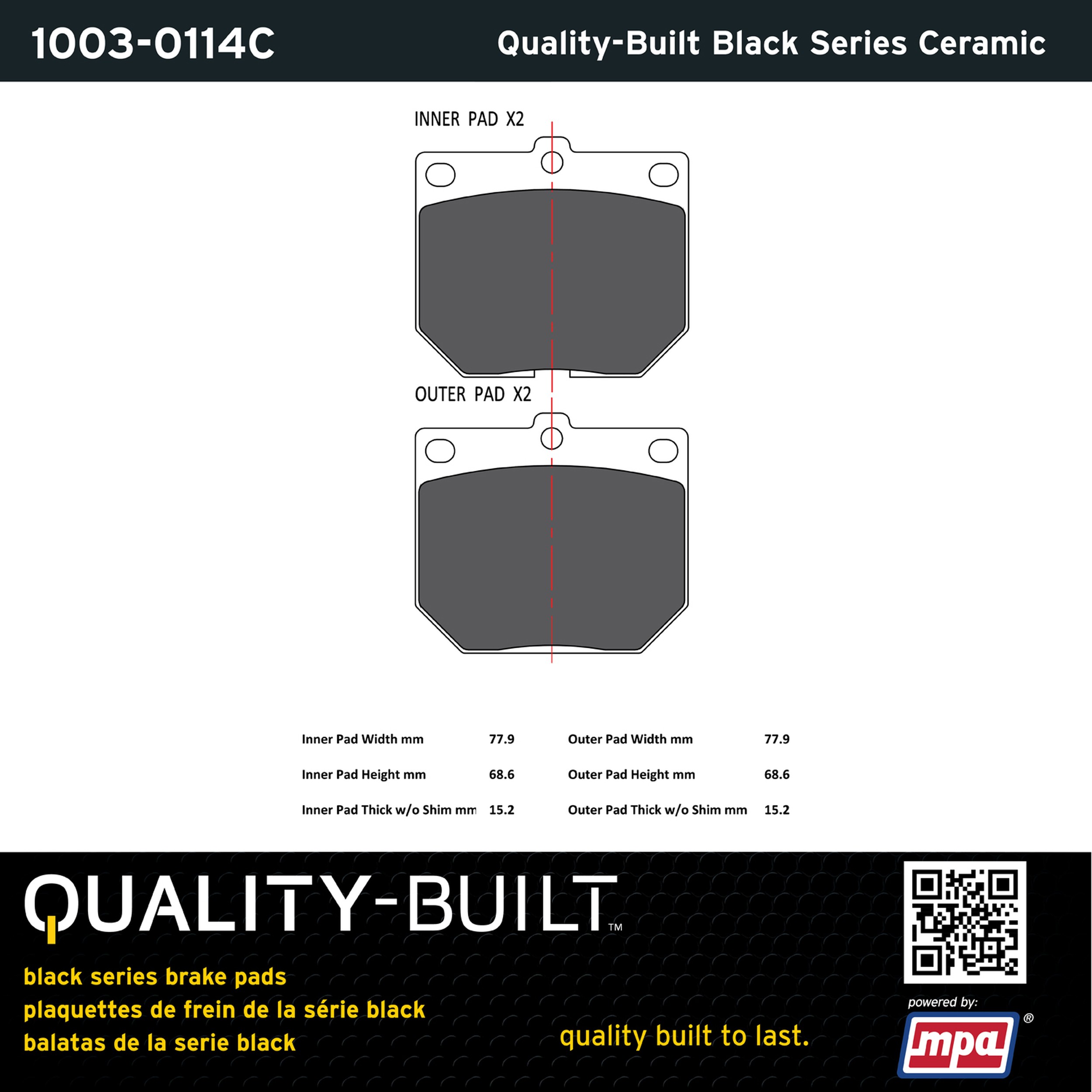 - Quality-Built Black Series Brake Pads are the ultimate in brake pad performance, delivering smooth, reliable stopping with zero noise and low dust. Application-specific friction formulas take the guesswork out of pad selection while providing even, predictable pedal feel and fade-free stopping power across a wide thermal range. Black Series friction compounds are engineered for optimized brake system performance and improved stopping power.