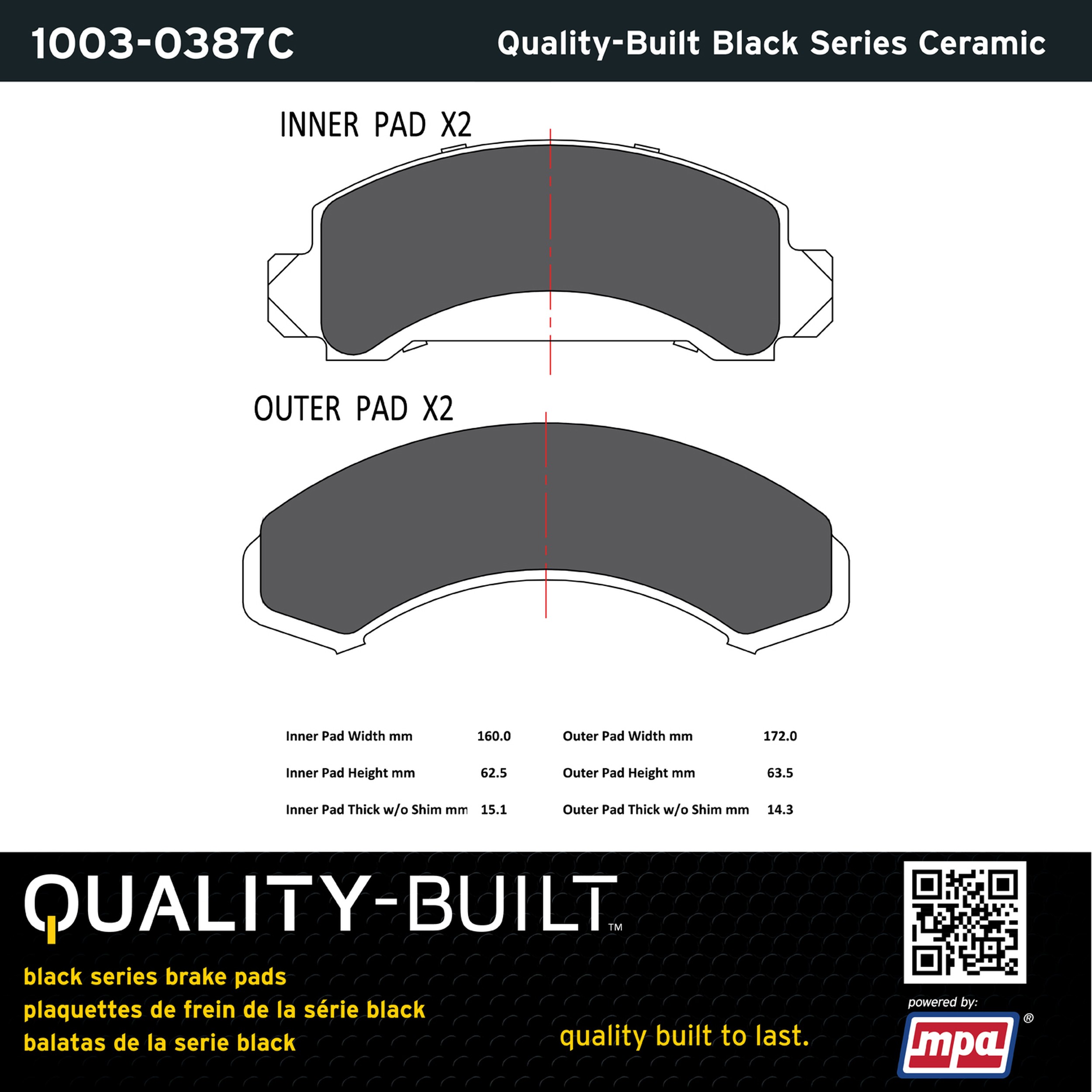 - Quality-Built Black Series Brake Pads are the ultimate in brake pad performance, delivering smooth, reliable stopping with zero noise and low dust. Application-specific friction formulas take the guesswork out of pad selection while providing even, predictable pedal feel and fade-free stopping power across a wide thermal range. Black Series friction compounds are engineered for optimized brake system performance and improved stopping power.