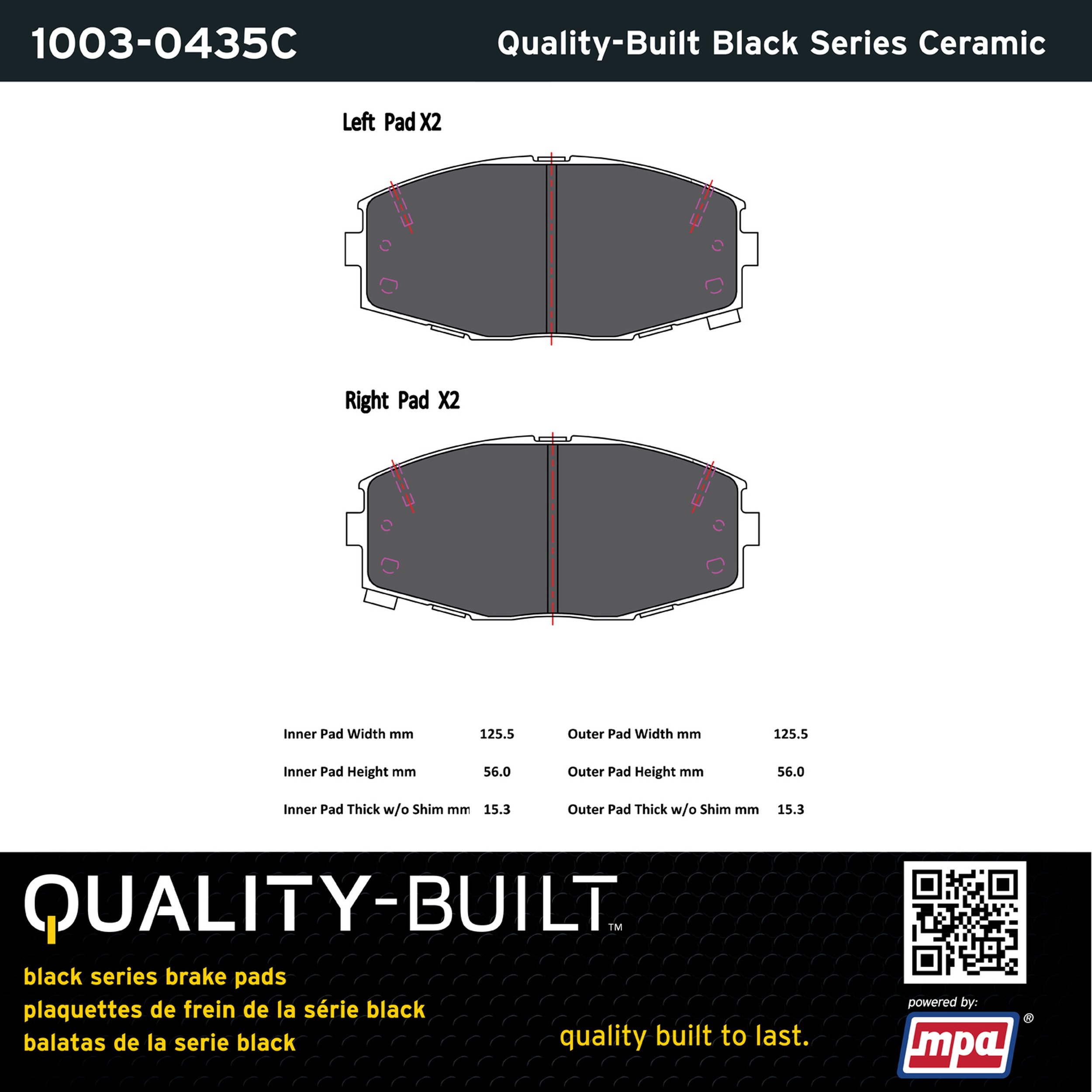 - Quality-Built Black Series Brake Pads are the ultimate in brake pad performance, delivering smooth, reliable stopping with zero noise and low dust. Application-specific friction formulas take the guesswork out of pad selection while providing even, predictable pedal feel and fade-free stopping power across a wide thermal range. Black Series friction compounds are engineered for optimized brake system performance and improved stopping power.