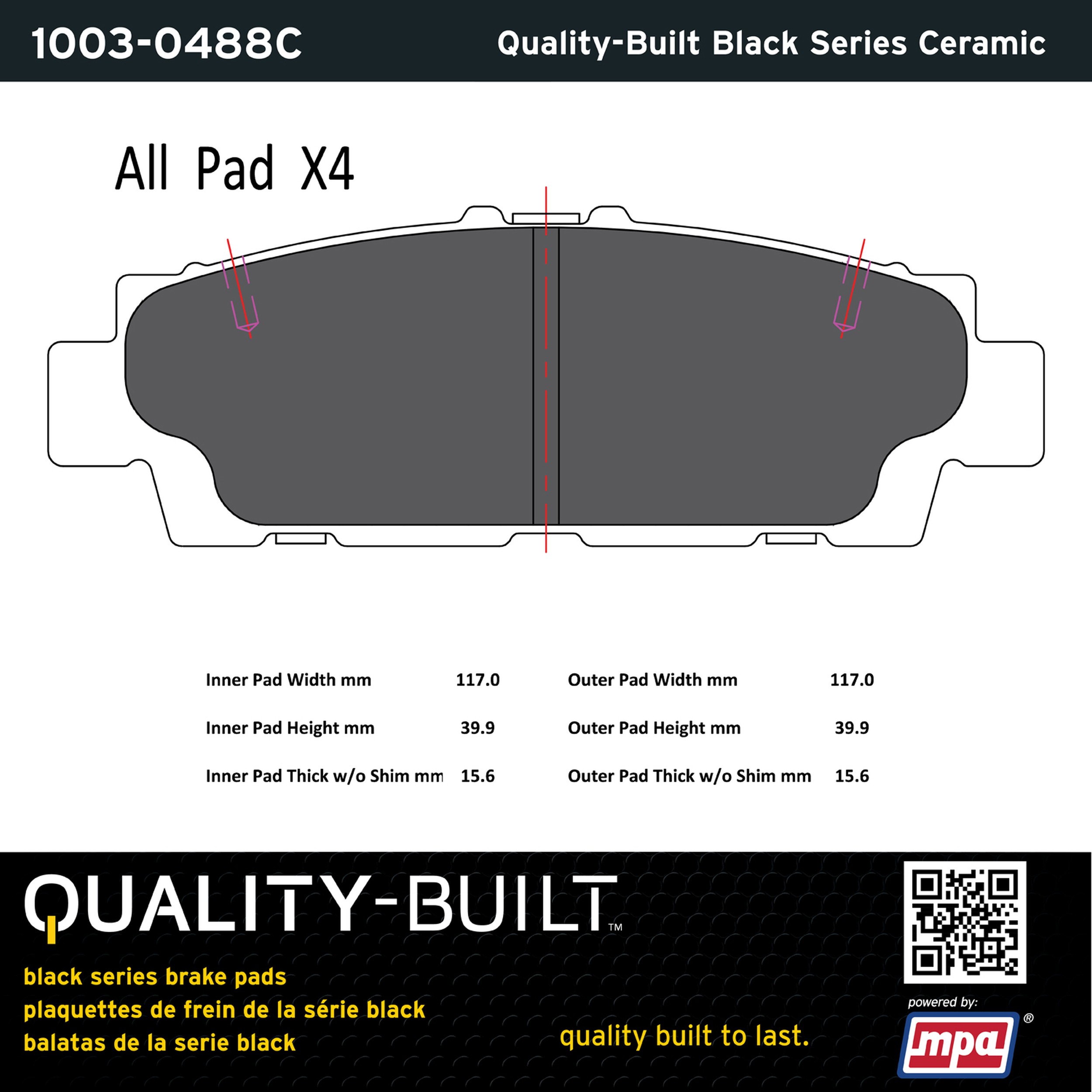 - Quality-Built Black Series Brake Pads are the ultimate in brake pad performance, delivering smooth, reliable stopping with zero noise and low dust. Application-specific friction formulas take the guesswork out of pad selection while providing even, predictable pedal feel and fade-free stopping power across a wide thermal range. Black Series friction compounds are engineered for optimized brake system performance and improved stopping power.