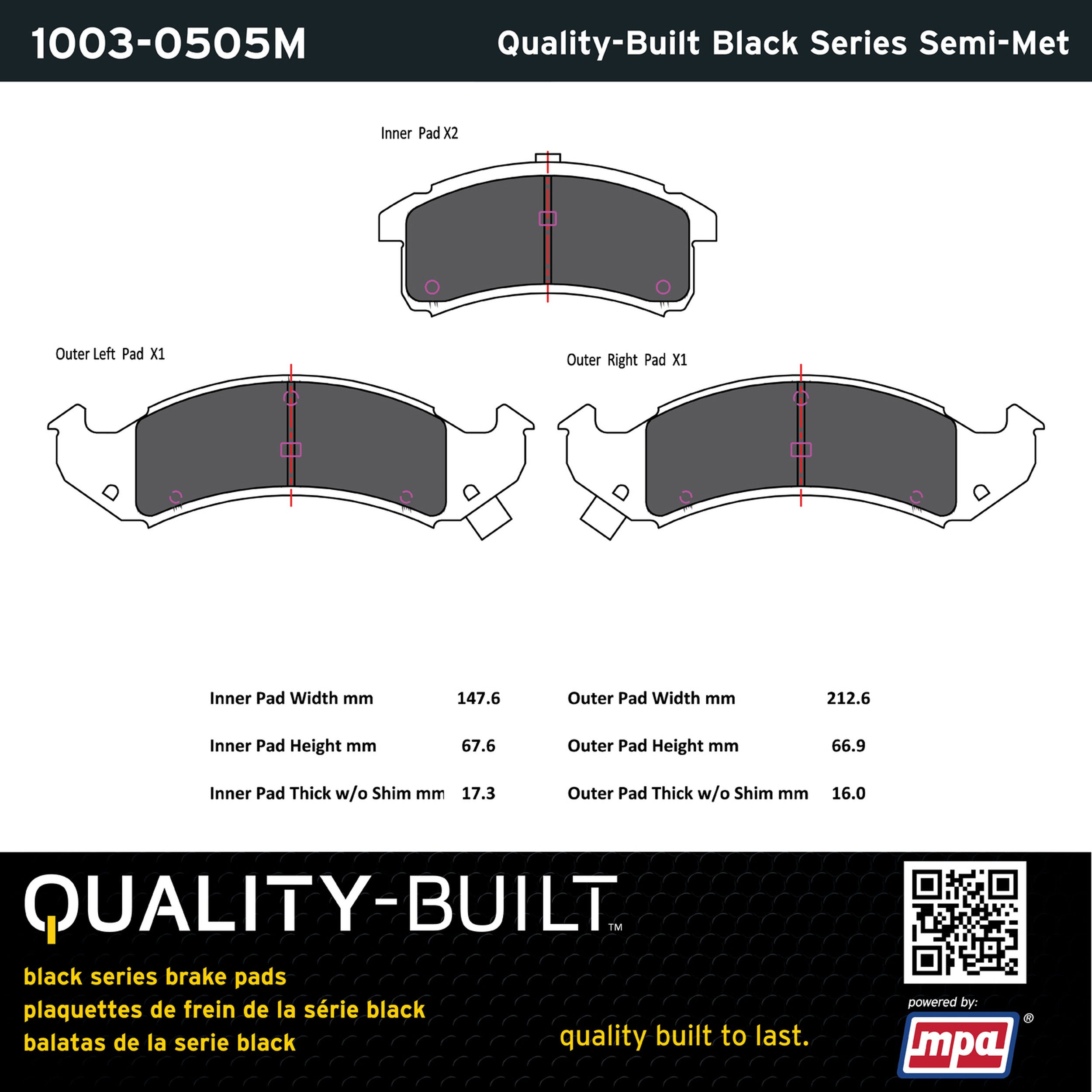 - Quality-Built Black Series Brake Pads are the ultimate in brake pad performance, delivering smooth, reliable stopping with zero noise and low dust. Application-specific friction formulas take the guesswork out of pad selection while providing even, predictable pedal feel and fade-free stopping power across a wide thermal range. Black Series friction compounds are engineered for optimized brake system performance and improved stopping power.