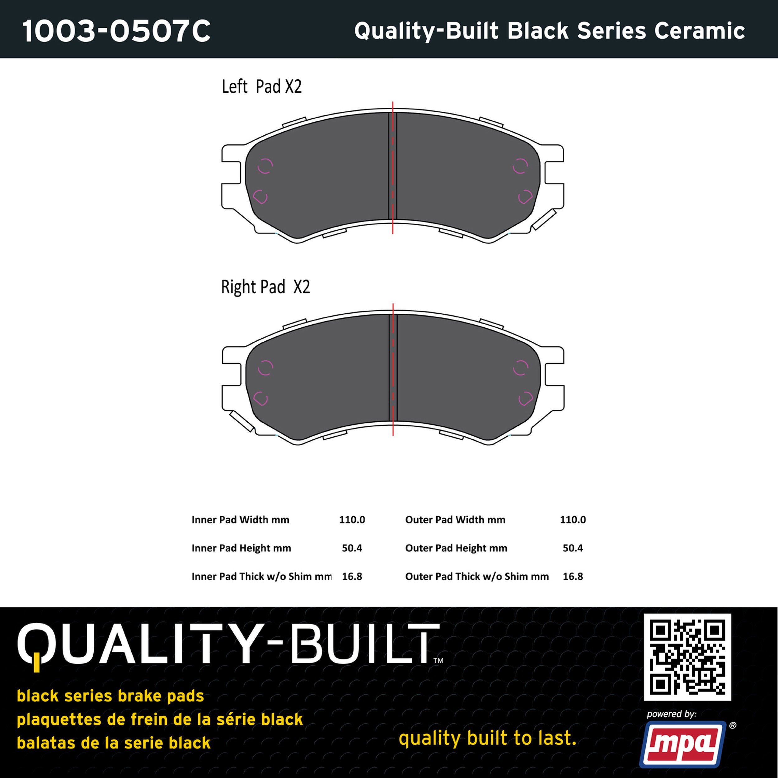 - Quality-Built Black Series Brake Pads are the ultimate in brake pad performance, delivering smooth, reliable stopping with zero noise and low dust. Application-specific friction formulas take the guesswork out of pad selection while providing even, predictable pedal feel and fade-free stopping power across a wide thermal range. Black Series friction compounds are engineered for optimized brake system performance and improved stopping power.