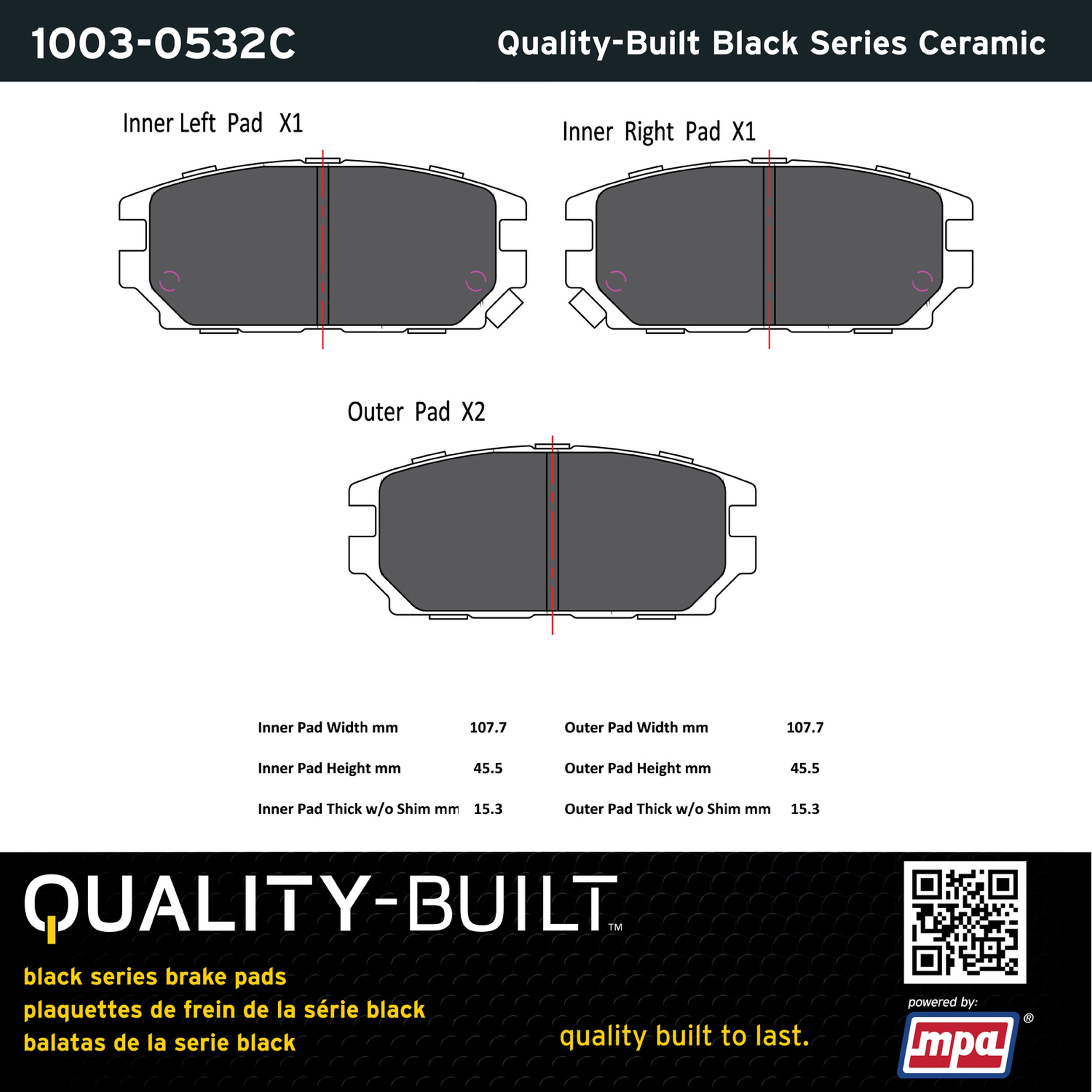 - Quality-Built Black Series Brake Pads are the ultimate in brake pad performance, delivering smooth, reliable stopping with zero noise and low dust. Application-specific friction formulas take the guesswork out of pad selection while providing even, predictable pedal feel and fade-free stopping power across a wide thermal range. Black Series friction compounds are engineered for optimized brake system performance and improved stopping power.