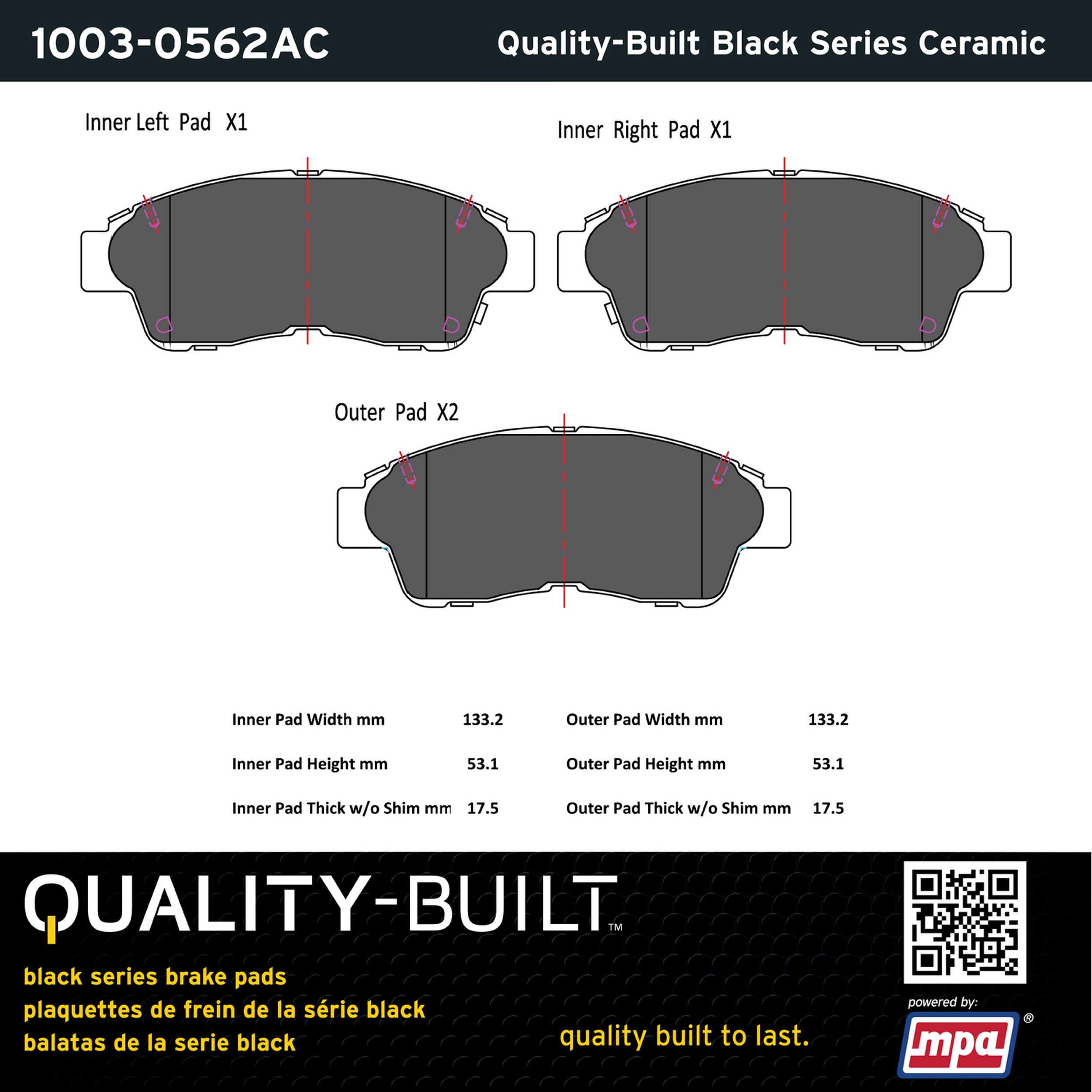 - Quality-Built Black Series Brake Pads are the ultimate in brake pad performance, delivering smooth, reliable stopping with zero noise and low dust. Application-specific friction formulas take the guesswork out of pad selection while providing even, predictable pedal feel and fade-free stopping power across a wide thermal range. Black Series friction compounds are engineered for optimized brake system performance and improved stopping power.