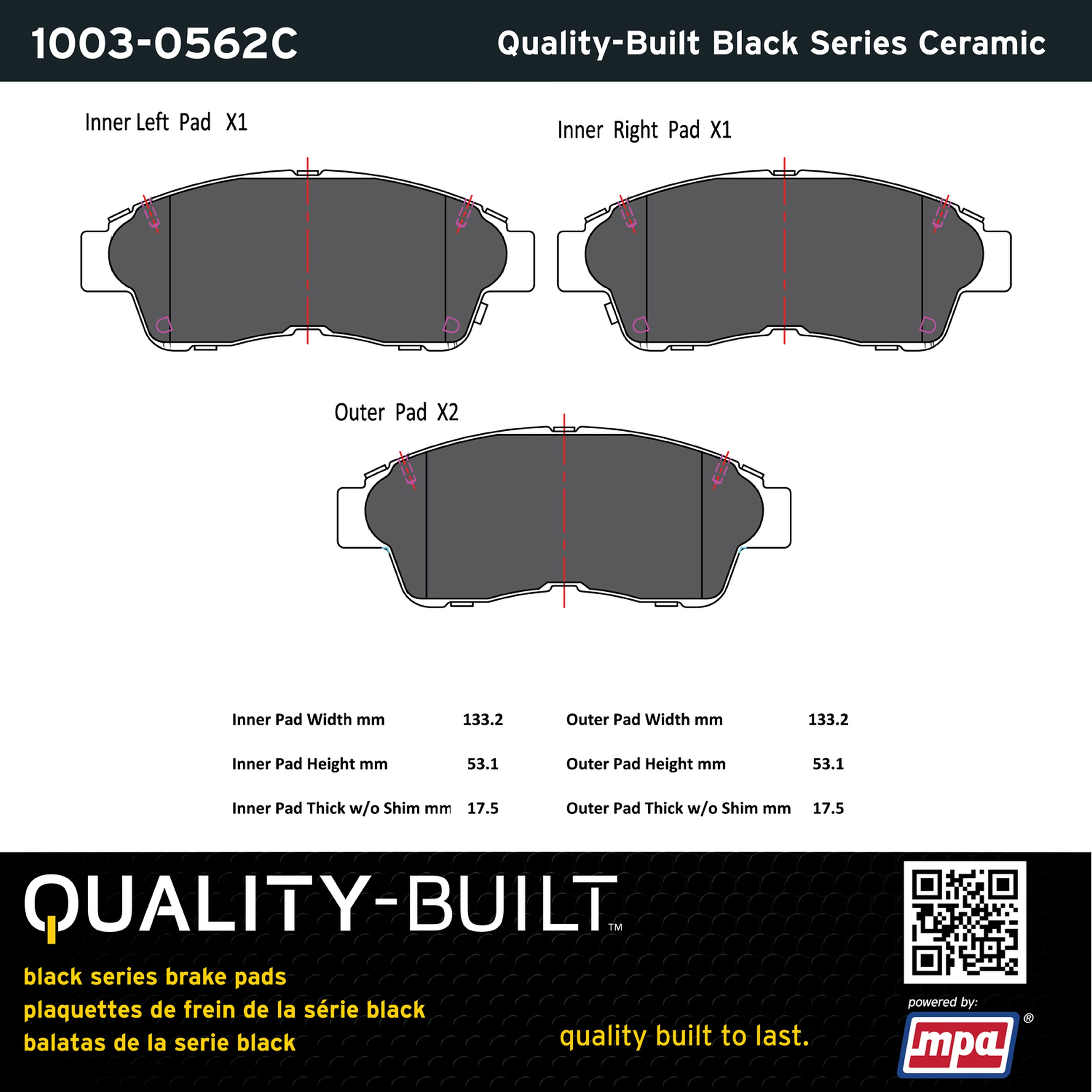 - Quality-Built Black Series Brake Pads are the ultimate in brake pad performance, delivering smooth, reliable stopping with zero noise and low dust. Application-specific friction formulas take the guesswork out of pad selection while providing even, predictable pedal feel and fade-free stopping power across a wide thermal range. Black Series friction compounds are engineered for optimized brake system performance and improved stopping power.