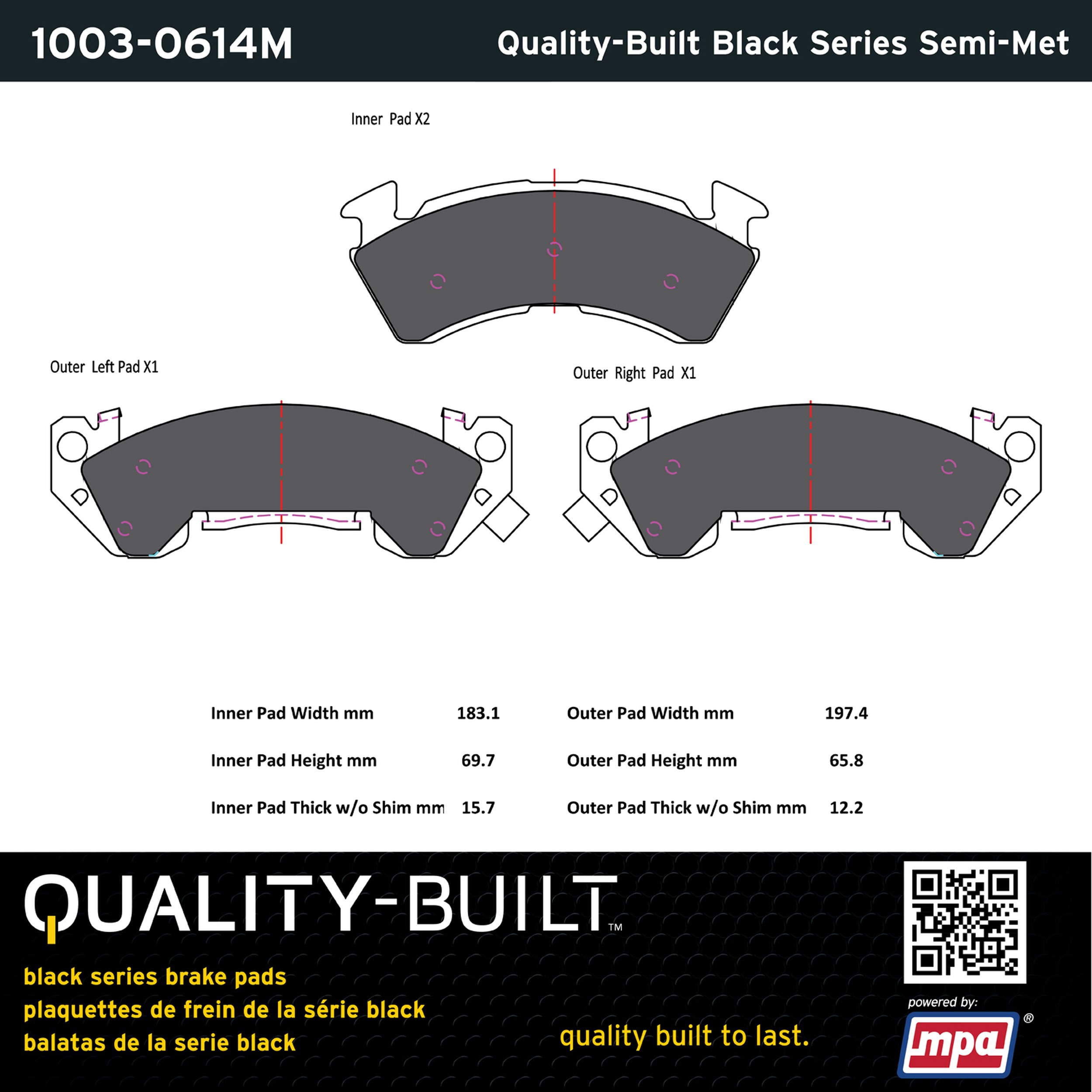 - Quality-Built Black Series Brake Pads are the ultimate in brake pad performance, delivering smooth, reliable stopping with zero noise and low dust. Application-specific friction formulas take the guesswork out of pad selection while providing even, predictable pedal feel and fade-free stopping power across a wide thermal range. Black Series friction compounds are engineered for optimized brake system performance and improved stopping power.