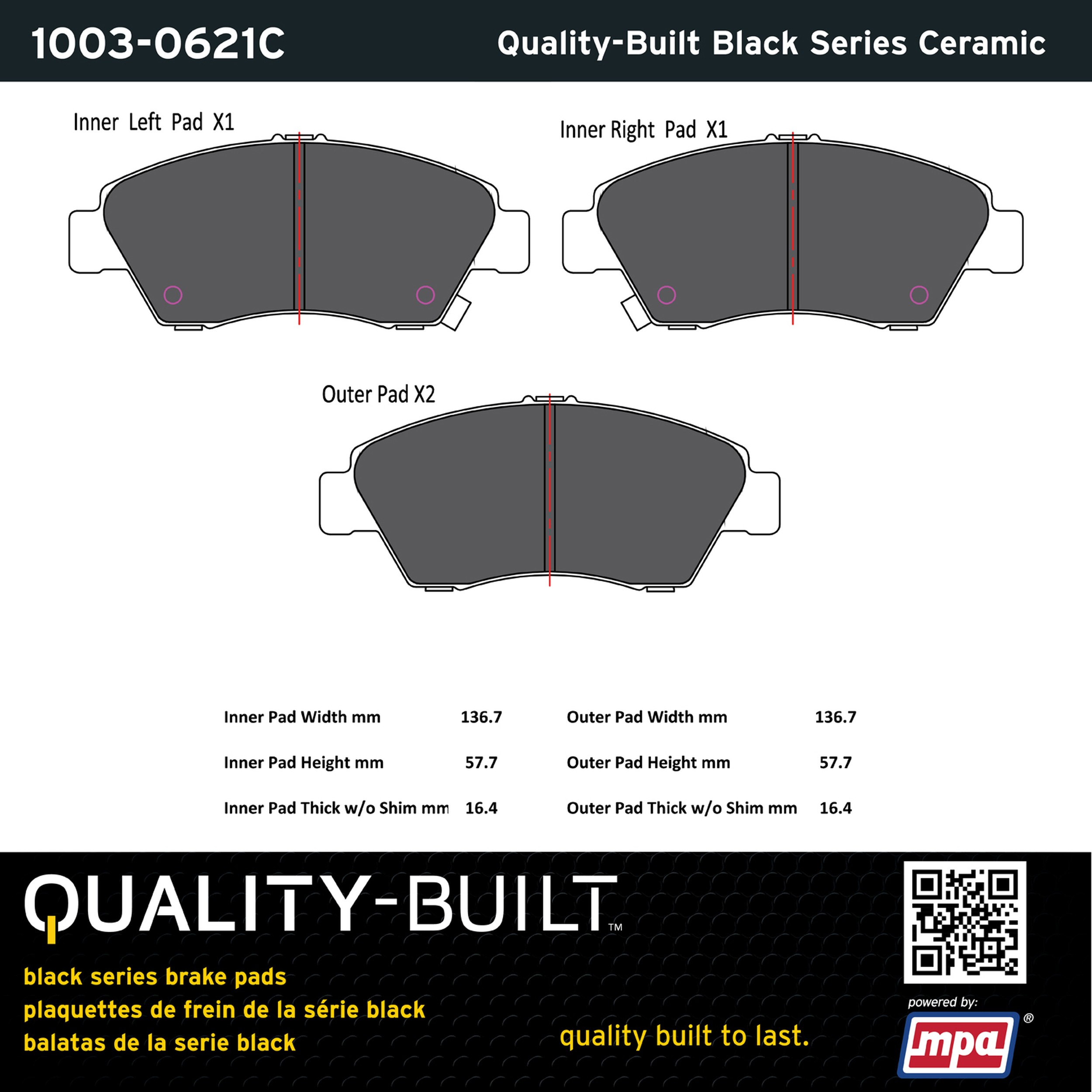 - Quality-Built Black Series Ceramic Brake Pads w/ Hardware
