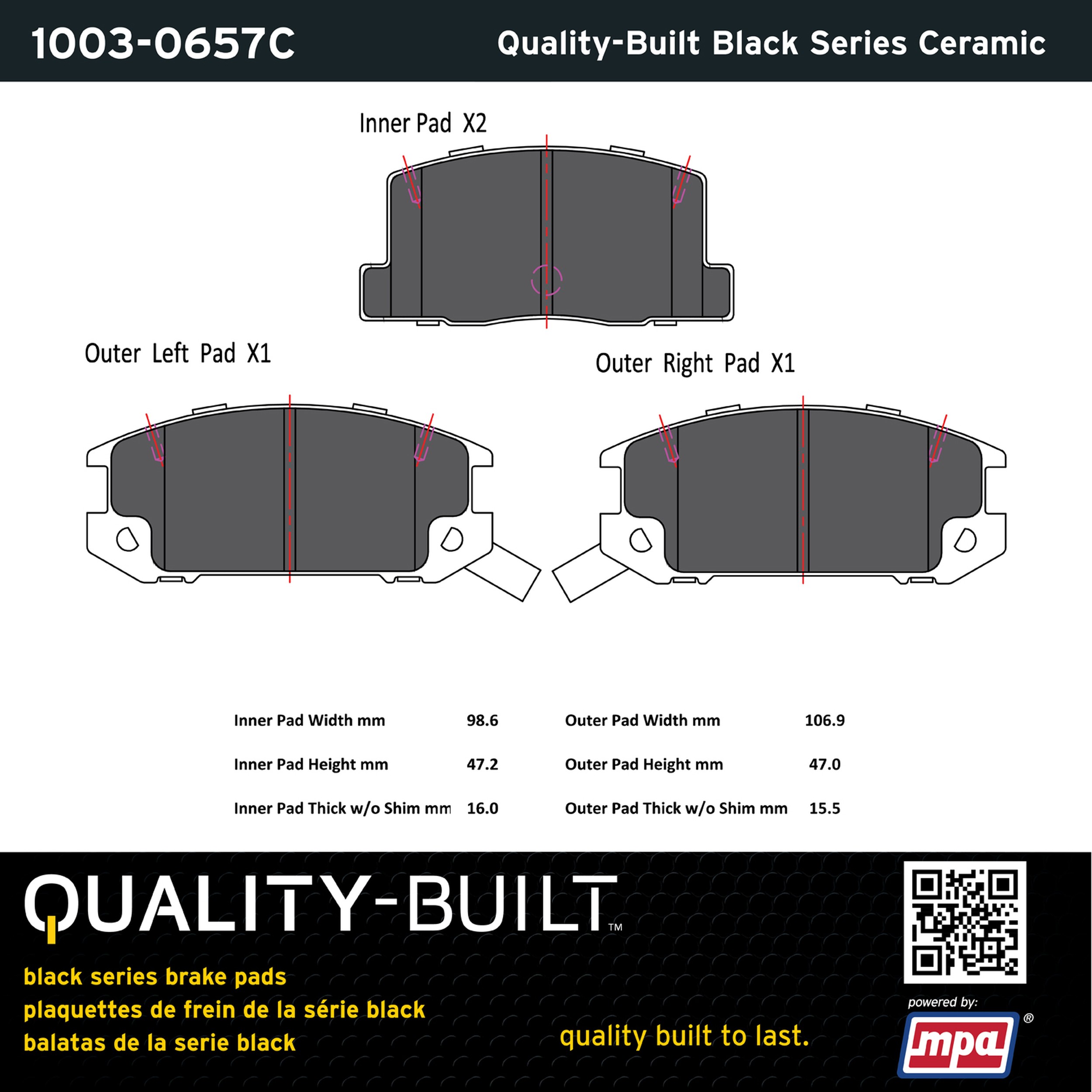 - Quality-Built Black Series Brake Pads are the ultimate in brake pad performance, delivering smooth, reliable stopping with zero noise and low dust. Application-specific friction formulas take the guesswork out of pad selection while providing even, predictable pedal feel and fade-free stopping power across a wide thermal range. Black Series friction compounds are engineered for optimized brake system performance and improved stopping power.