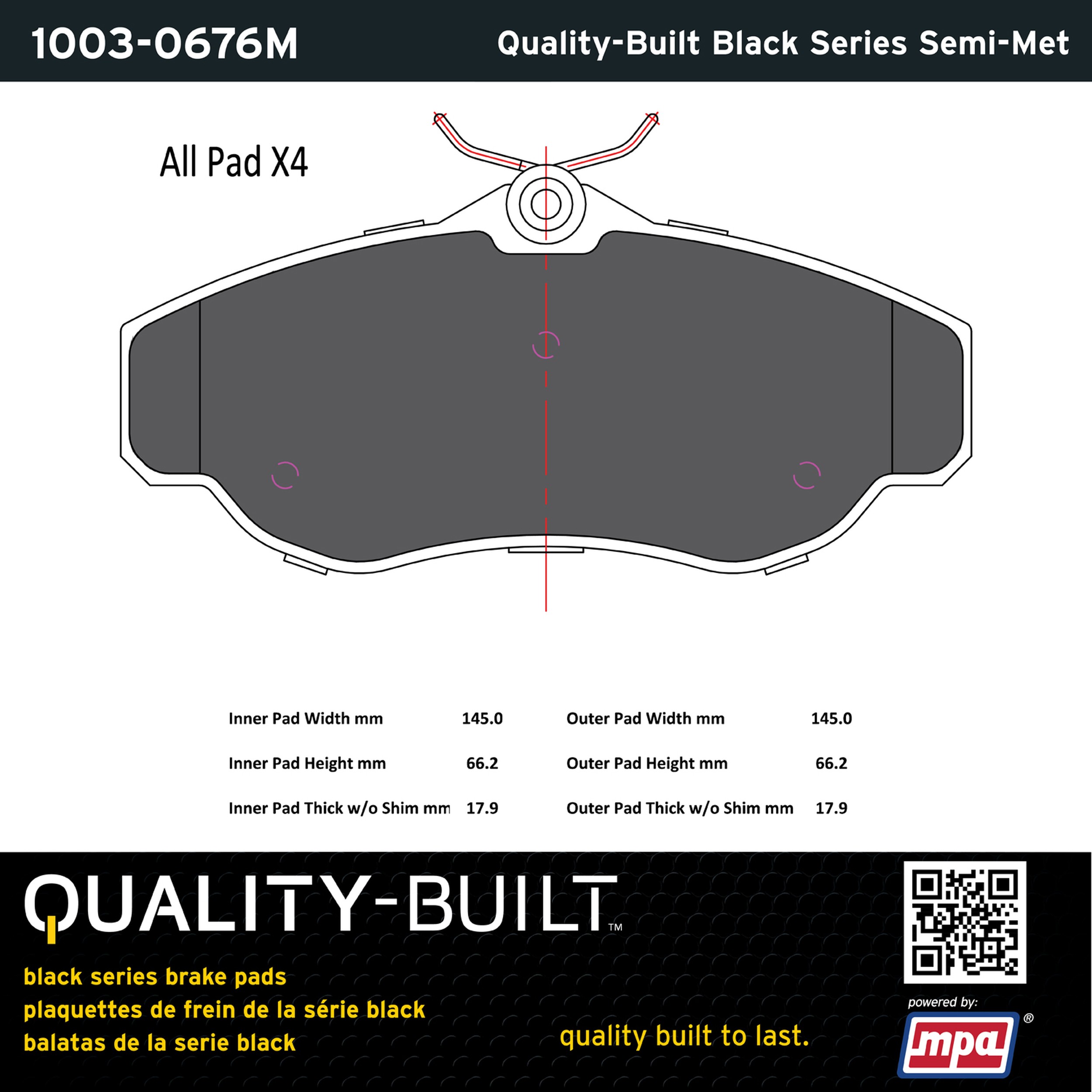 - Quality-Built Black Series Brake Pads are the ultimate in brake pad performance, delivering smooth, reliable stopping with zero noise and low dust. Application-specific friction formulas take the guesswork out of pad selection while providing even, predictable pedal feel and fade-free stopping power across a wide thermal range. Black Series friction compounds are engineered for optimized brake system performance and improved stopping power.