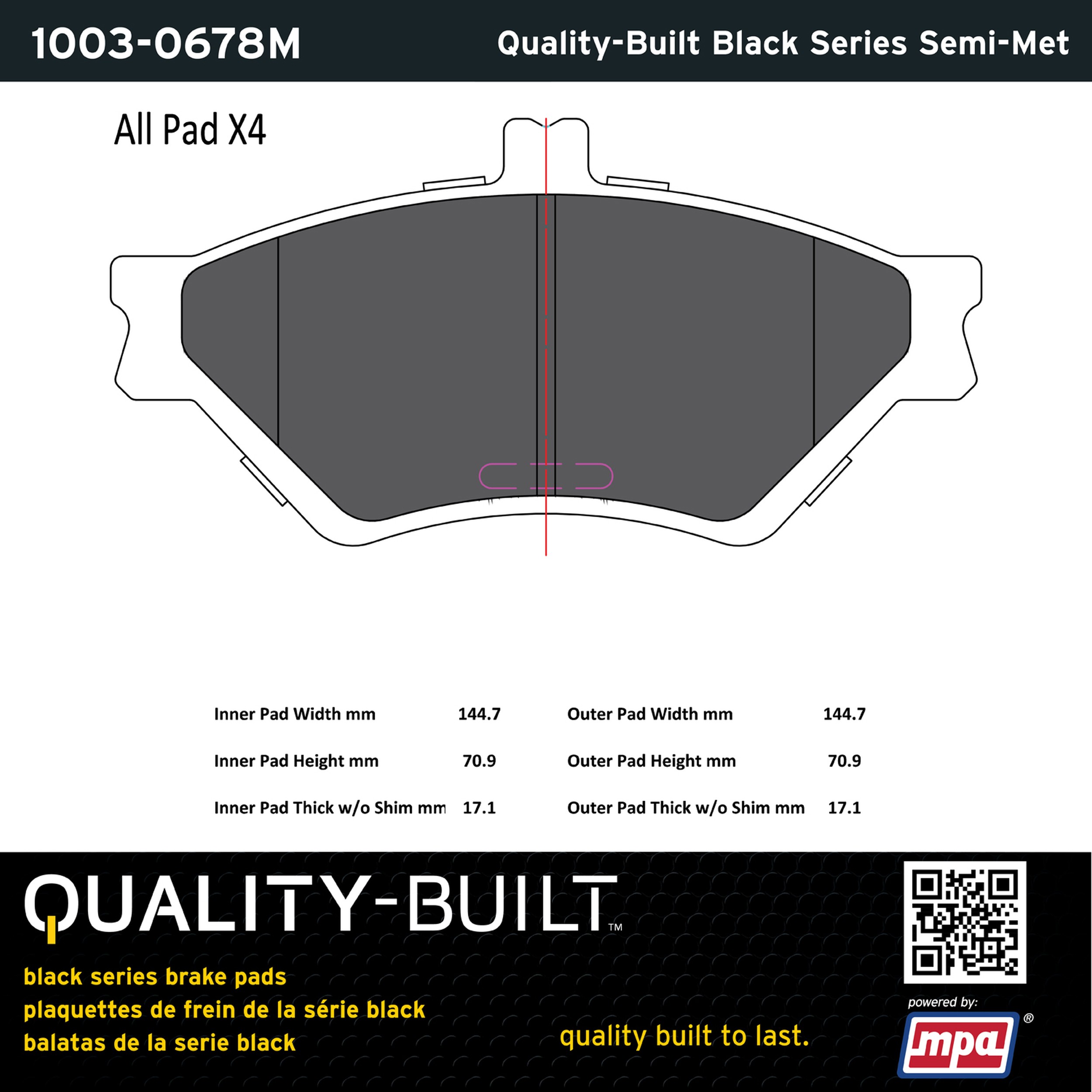 - Quality-Built Black Series Brake Pads are the ultimate in brake pad performance, delivering smooth, reliable stopping with zero noise and low dust. Application-specific friction formulas take the guesswork out of pad selection while providing even, predictable pedal feel and fade-free stopping power across a wide thermal range. Black Series friction compounds are engineered for optimized brake system performance and improved stopping power.