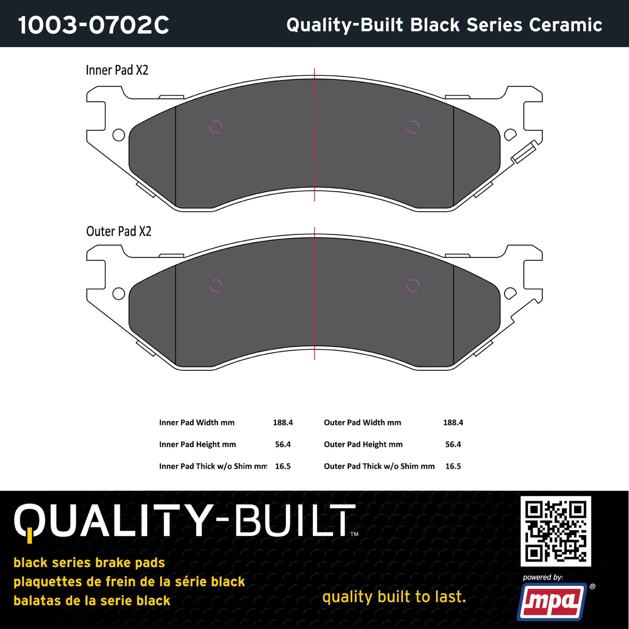 - Quality-Built Black Series Brake Pads are the ultimate in brake pad performance, delivering smooth, reliable stopping with zero noise and low dust. Application-specific friction formulas take the guesswork out of pad selection while providing even, predictable pedal feel and fade-free stopping power across a wide thermal range. Black Series friction compounds are engineered for optimized brake system performance and improved stopping power.