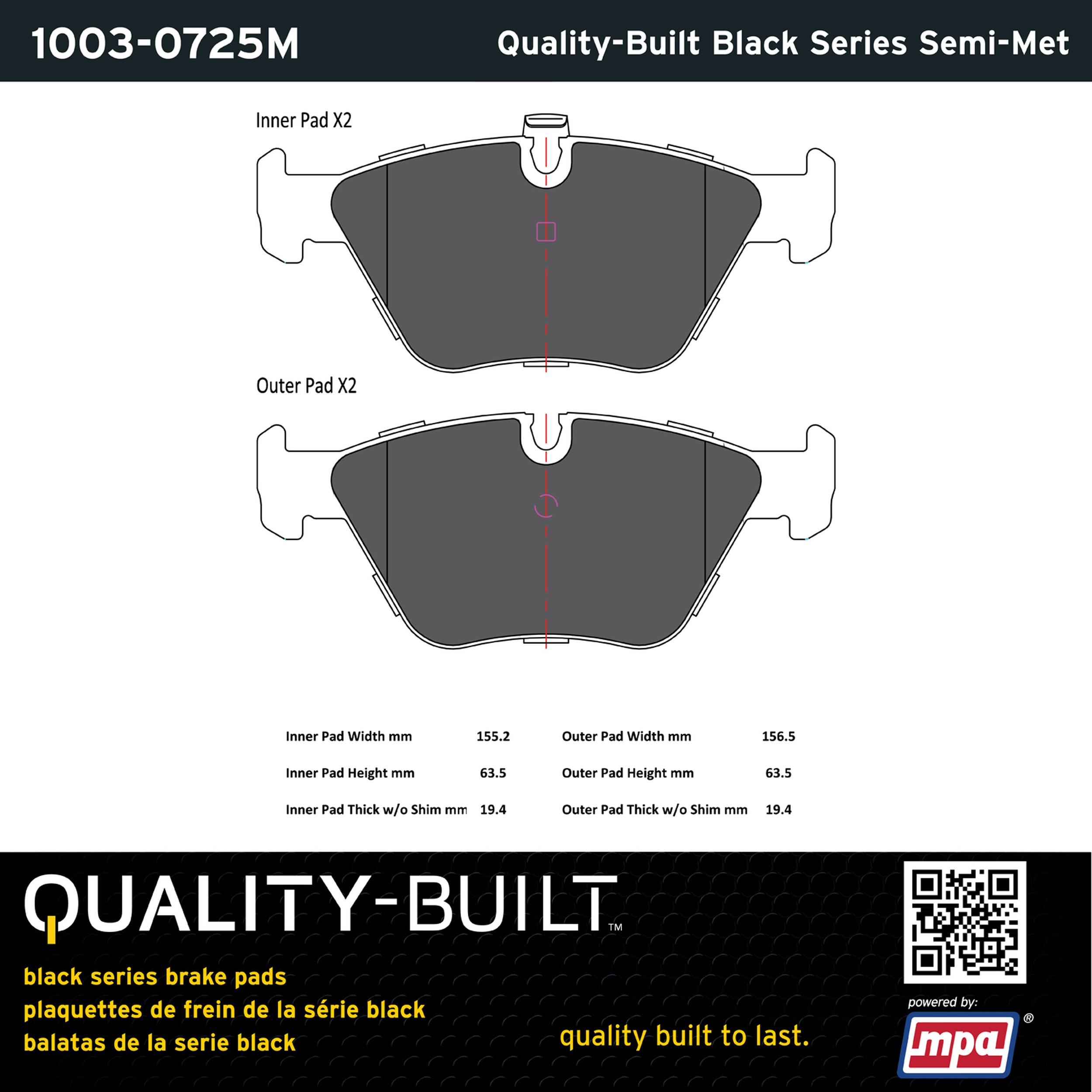 - Quality-Built Black Series Brake Pads are the ultimate in brake pad performance, delivering smooth, reliable stopping with zero noise and low dust. Application-specific friction formulas take the guesswork out of pad selection while providing even, predictable pedal feel and fade-free stopping power across a wide thermal range. Black Series friction compounds are engineered for optimized brake system performance and improved stopping power.