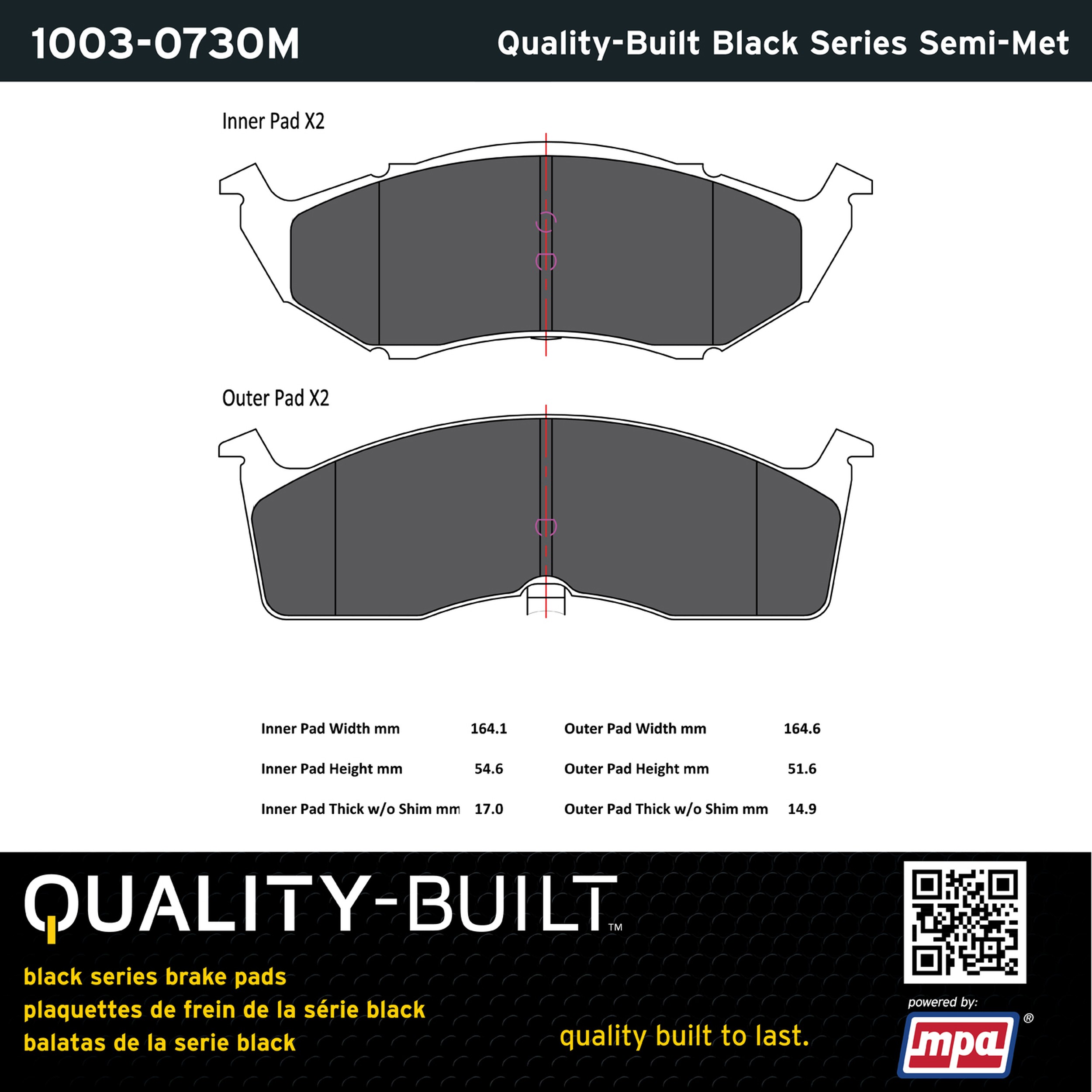 - Quality-Built Black Series Brake Pads are the ultimate in brake pad performance, delivering smooth, reliable stopping with zero noise and low dust. Application-specific friction formulas take the guesswork out of pad selection while providing even, predictable pedal feel and fade-free stopping power across a wide thermal range. Black Series friction compounds are engineered for optimized brake system performance and improved stopping power.