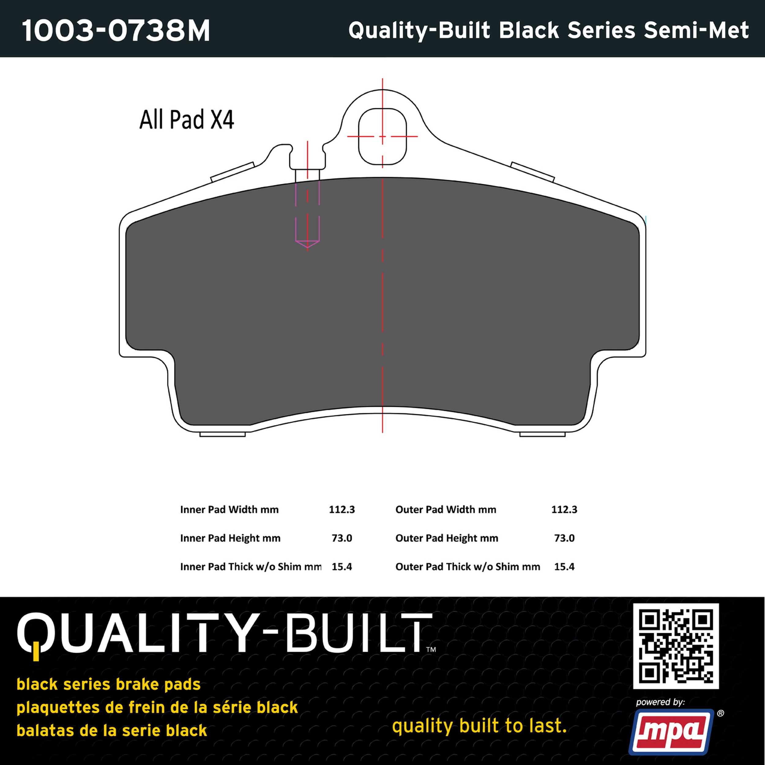 - Quality-Built Black Series Brake Pads are the ultimate in brake pad performance, delivering smooth, reliable stopping with zero noise and low dust. Application-specific friction formulas take the guesswork out of pad selection while providing even, predictable pedal feel and fade-free stopping power across a wide thermal range. Black Series friction compounds are engineered for optimized brake system performance and improved stopping power.