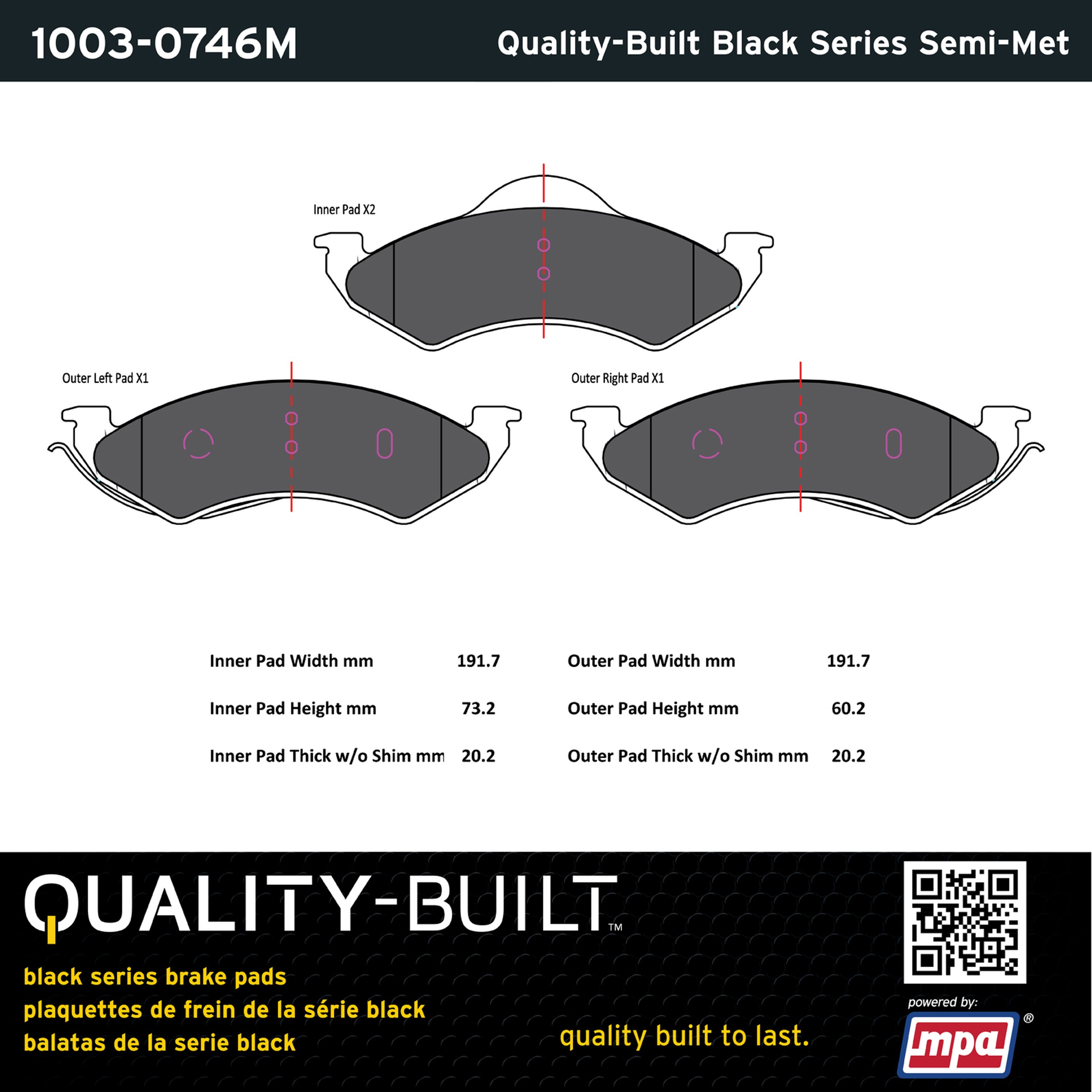 - Quality-Built Black Series Brake Pads are the ultimate in brake pad performance, delivering smooth, reliable stopping with zero noise and low dust. Application-specific friction formulas take the guesswork out of pad selection while providing even, predictable pedal feel and fade-free stopping power across a wide thermal range. Black Series friction compounds are engineered for optimized brake system performance and improved stopping power.