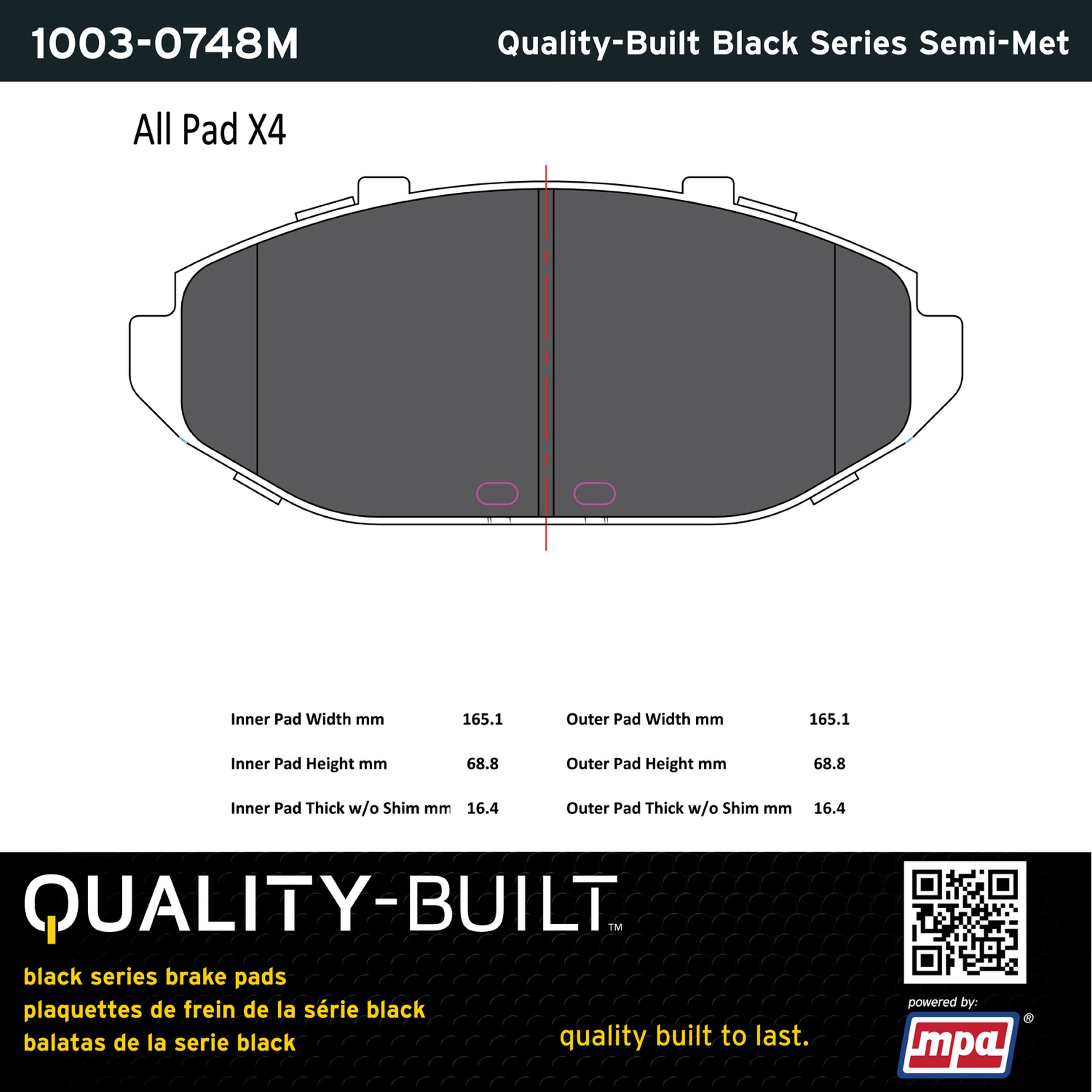 - Quality-Built Black Series Brake Pads are the ultimate in brake pad performance, delivering smooth, reliable stopping with zero noise and low dust. Application-specific friction formulas take the guesswork out of pad selection while providing even, predictable pedal feel and fade-free stopping power across a wide thermal range. Black Series friction compounds are engineered for optimized brake system performance and improved stopping power.