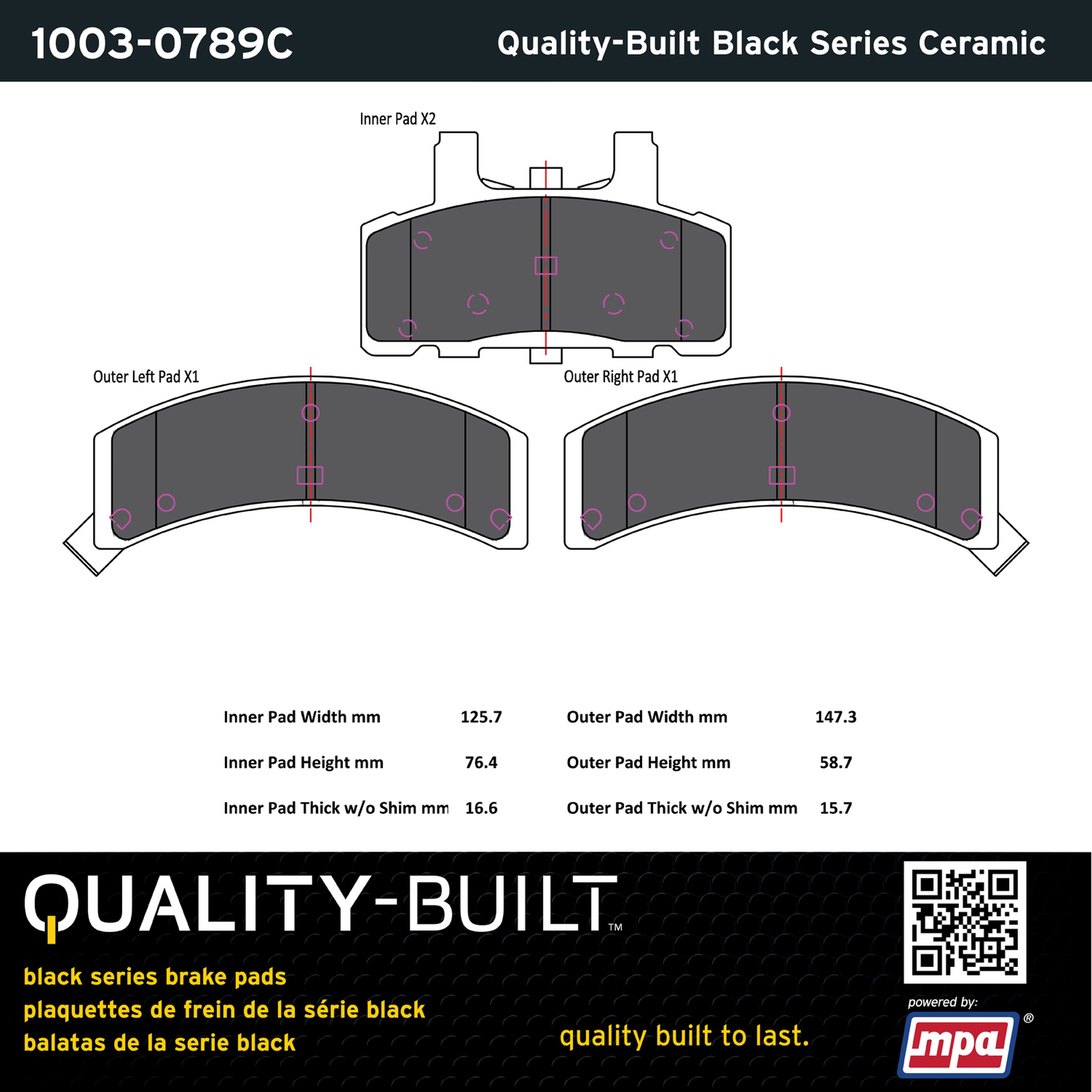 - Quality-Built Black Series Brake Pads are the ultimate in brake pad performance, delivering smooth, reliable stopping with zero noise and low dust. Application-specific friction formulas take the guesswork out of pad selection while providing even, predictable pedal feel and fade-free stopping power across a wide thermal range. Black Series friction compounds are engineered for optimized brake system performance and improved stopping power.