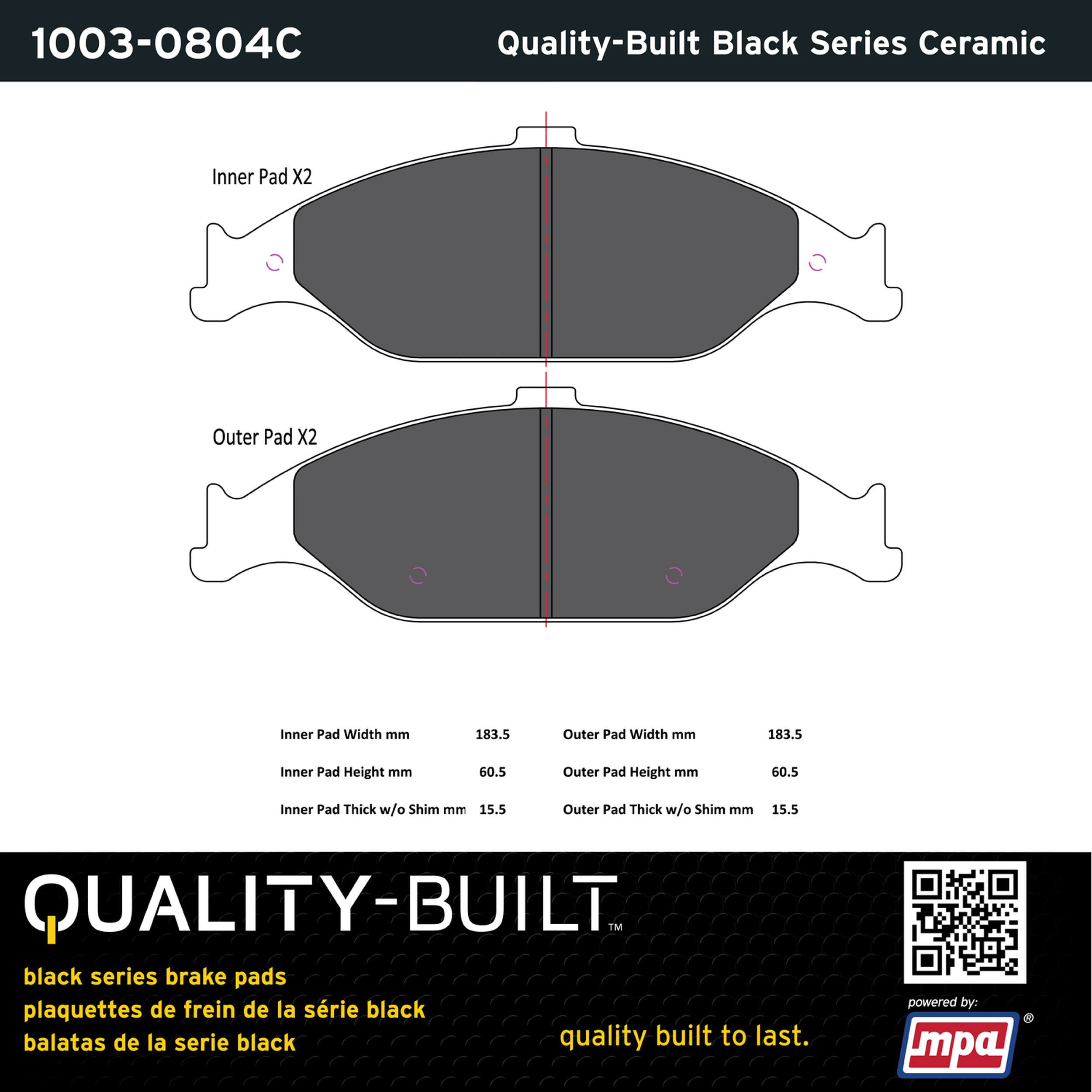 - Quality-Built Black Series Brake Pads are the ultimate in brake pad performance, delivering smooth, reliable stopping with zero noise and low dust. Application-specific friction formulas take the guesswork out of pad selection while providing even, predictable pedal feel and fade-free stopping power across a wide thermal range. Black Series friction compounds are engineered for optimized brake system performance and improved stopping power.