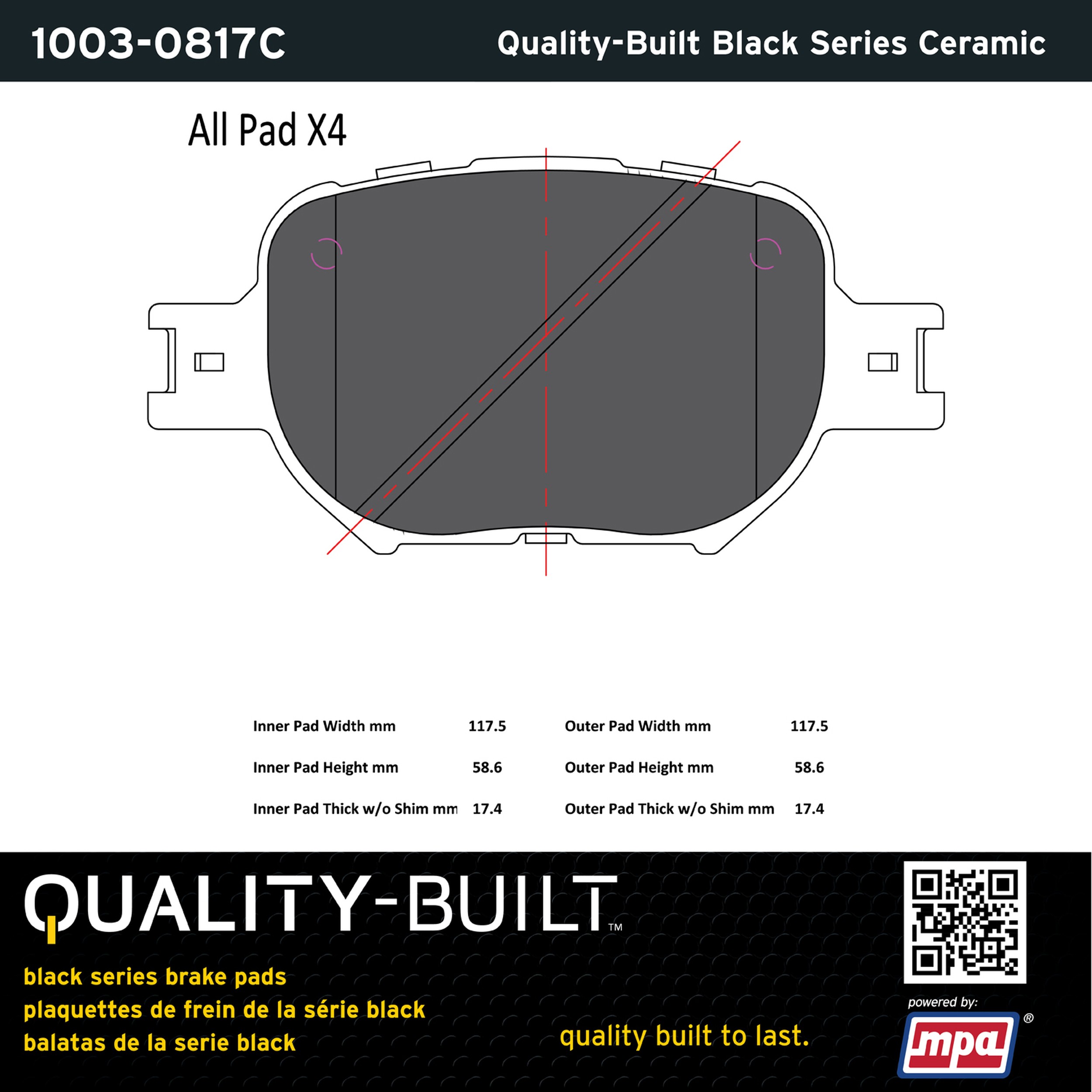 - Quality-Built Black Series Brake Pads are the ultimate in brake pad performance, delivering smooth, reliable stopping with zero noise and low dust. Application-specific friction formulas take the guesswork out of pad selection while providing even, predictable pedal feel and fade-free stopping power across a wide thermal range. Black Series friction compounds are engineered for optimized brake system performance and improved stopping power.