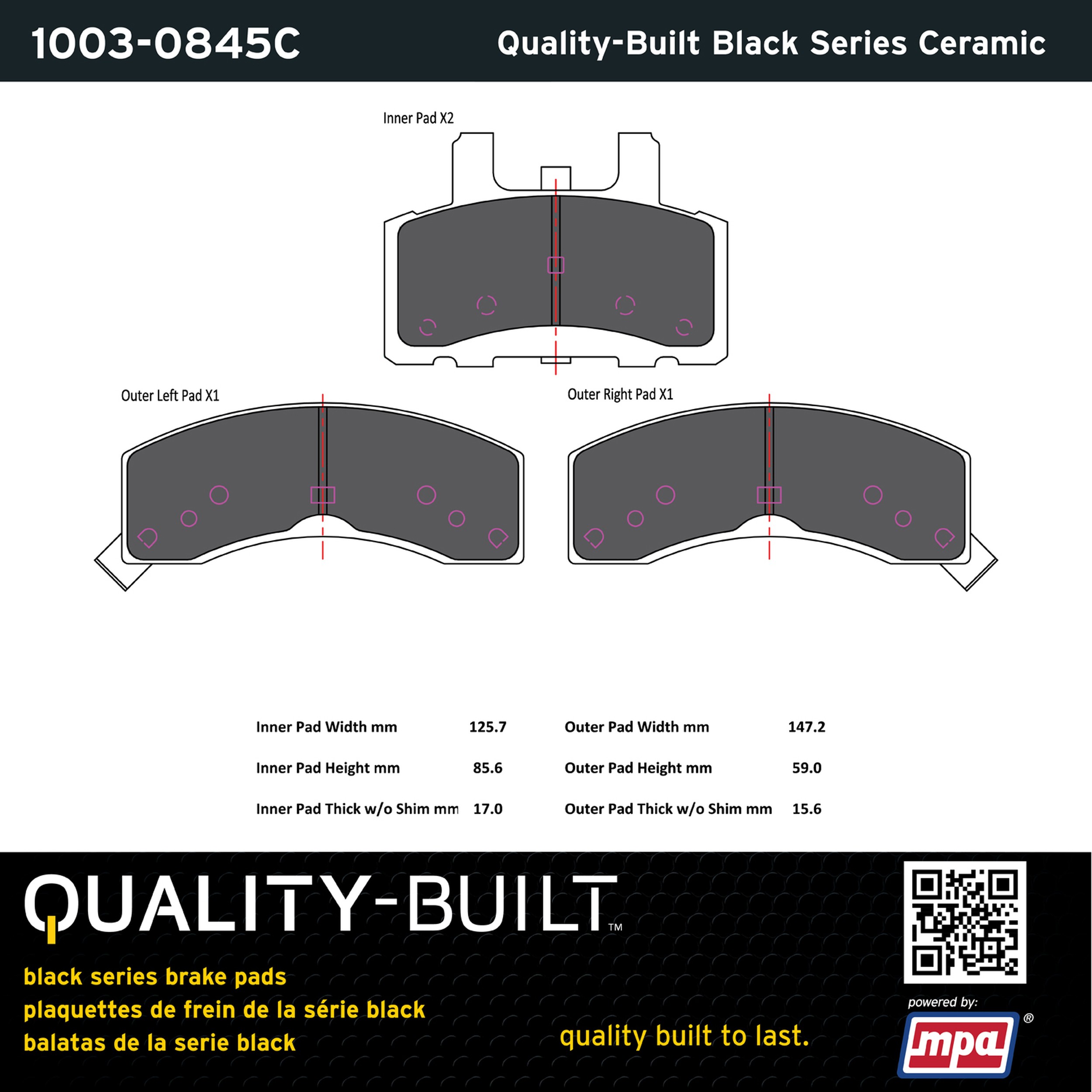 - Quality-Built Black Series Brake Pads are the ultimate in brake pad performance, delivering smooth, reliable stopping with zero noise and low dust. Application-specific friction formulas take the guesswork out of pad selection while providing even, predictable pedal feel and fade-free stopping power across a wide thermal range. Black Series friction compounds are engineered for optimized brake system performance and improved stopping power.
