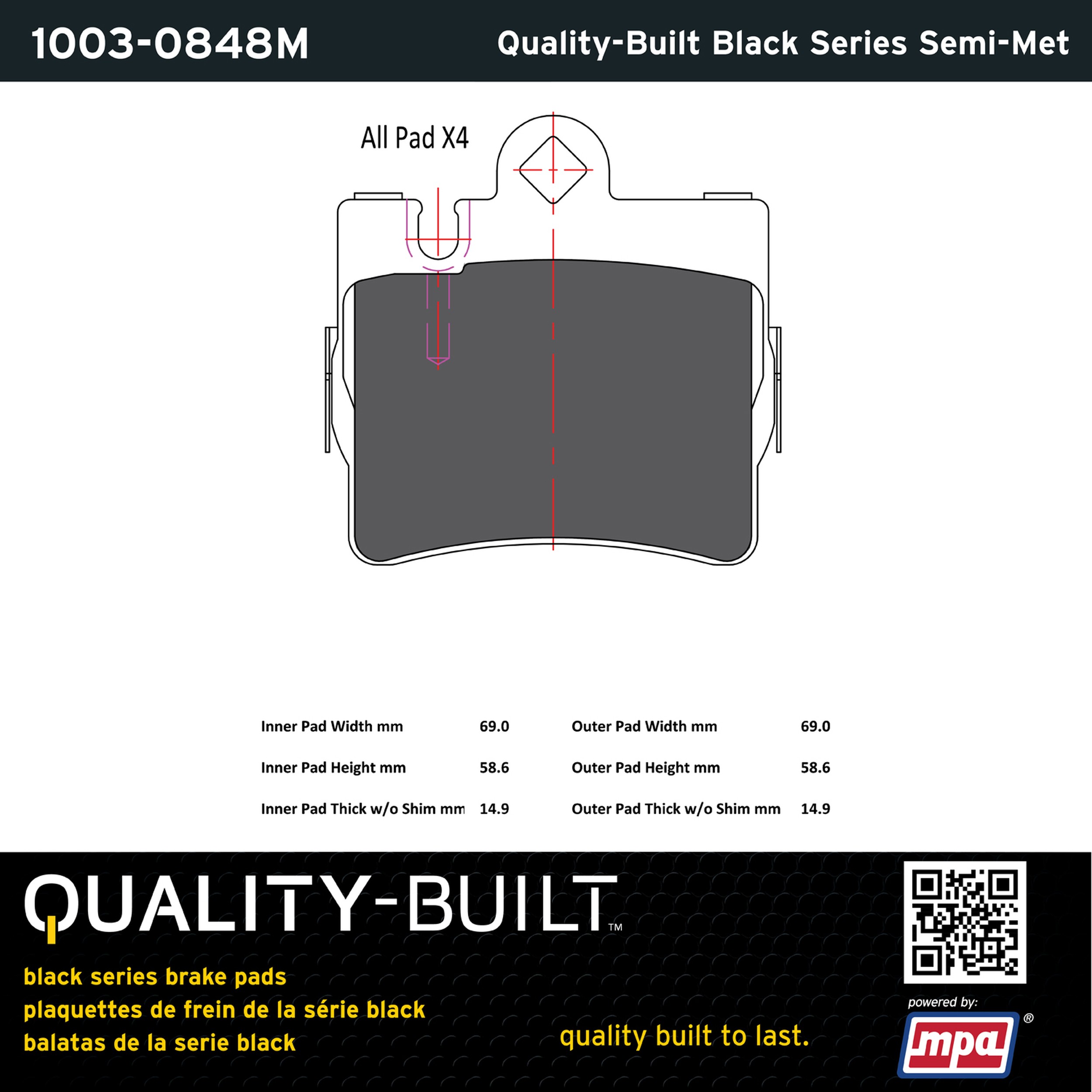 - Quality-Built Black Series Brake Pads are the ultimate in brake pad performance, delivering smooth, reliable stopping with zero noise and low dust. Application-specific friction formulas take the guesswork out of pad selection while providing even, predictable pedal feel and fade-free stopping power across a wide thermal range. Black Series friction compounds are engineered for optimized brake system performance and improved stopping power.