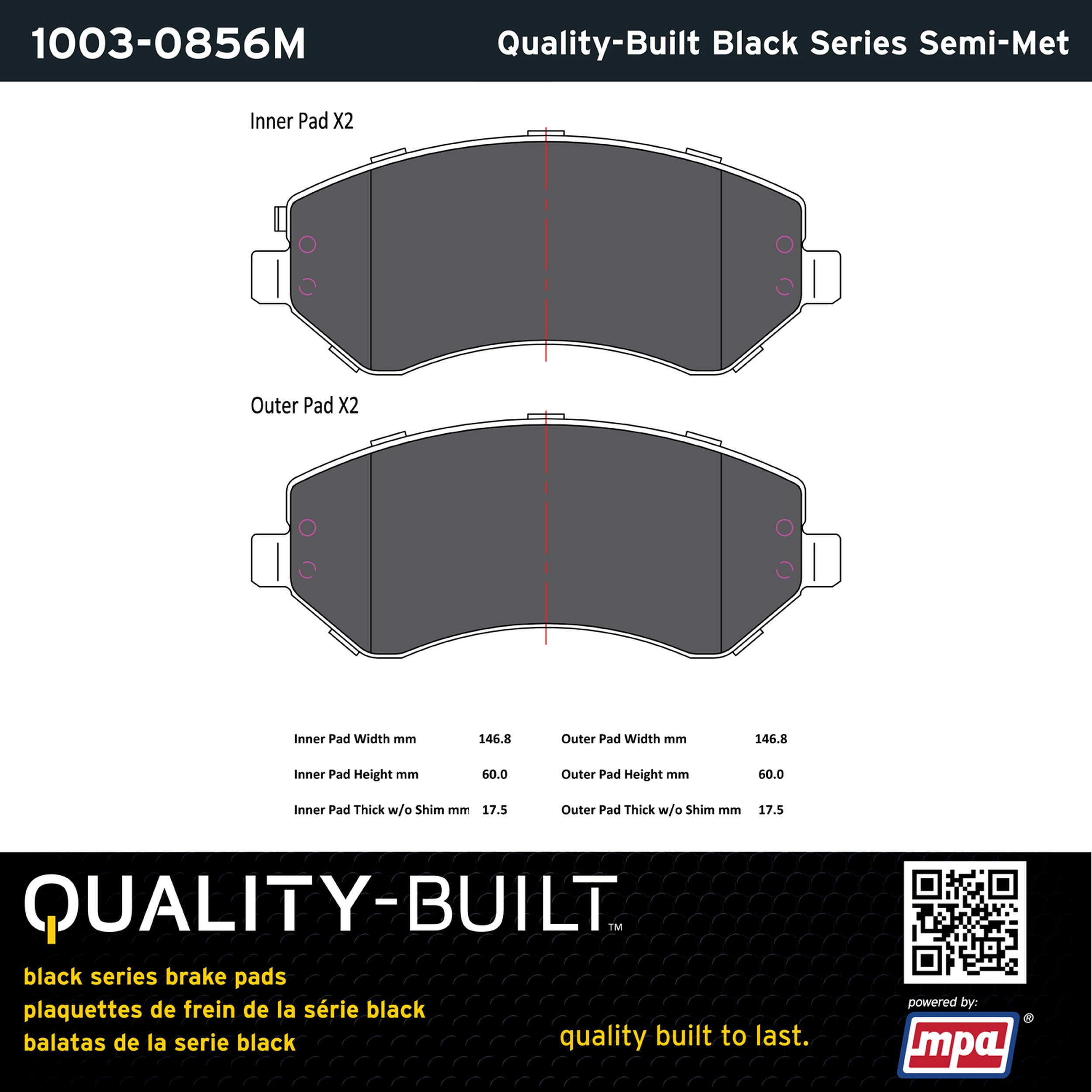 - Quality-Built Black Series Brake Pads are the ultimate in brake pad performance, delivering smooth, reliable stopping with zero noise and low dust. Application-specific friction formulas take the guesswork out of pad selection while providing even, predictable pedal feel and fade-free stopping power across a wide thermal range. Black Series friction compounds are engineered for optimized brake system performance and improved stopping power.