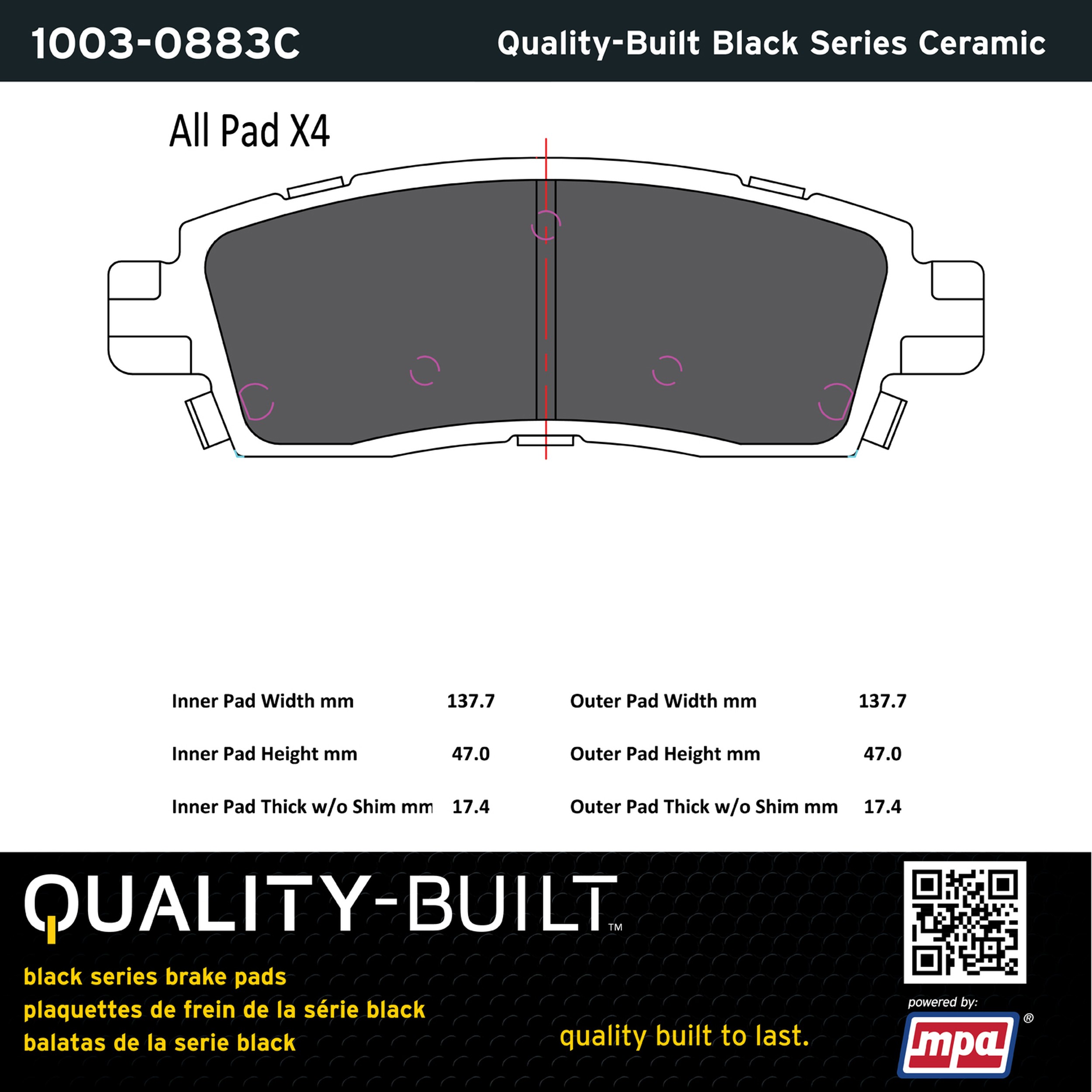 - Quality-Built Black Series Brake Pads are the ultimate in brake pad performance, delivering smooth, reliable stopping with zero noise and low dust. Application-specific friction formulas take the guesswork out of pad selection while providing even, predictable pedal feel and fade-free stopping power across a wide thermal range. Black Series friction compounds are engineered for optimized brake system performance and improved stopping power.