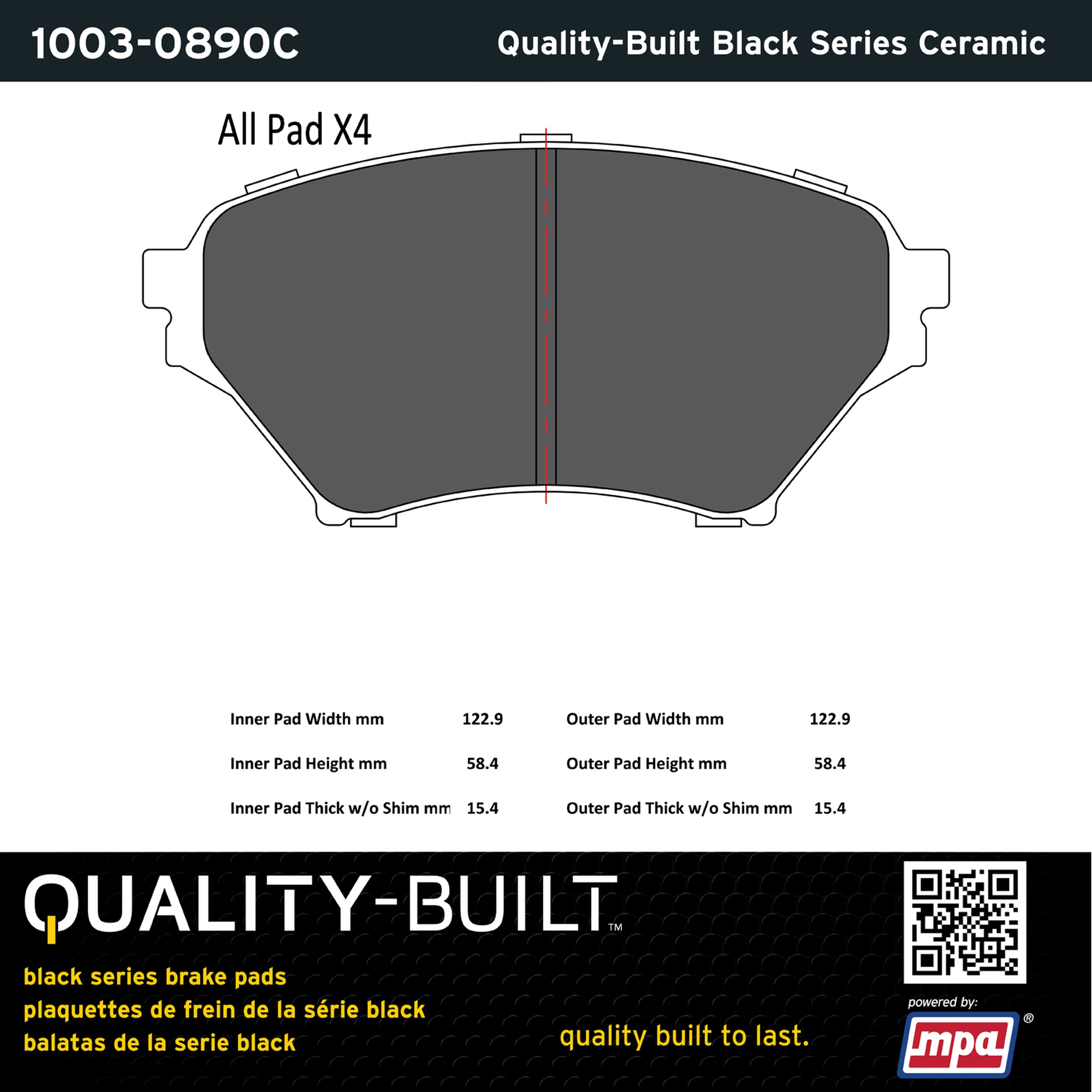 - Quality-Built Black Series Brake Pads are the ultimate in brake pad performance, delivering smooth, reliable stopping with zero noise and low dust. Application-specific friction formulas take the guesswork out of pad selection while providing even, predictable pedal feel and fade-free stopping power across a wide thermal range. Black Series friction compounds are engineered for optimized brake system performance and improved stopping power.