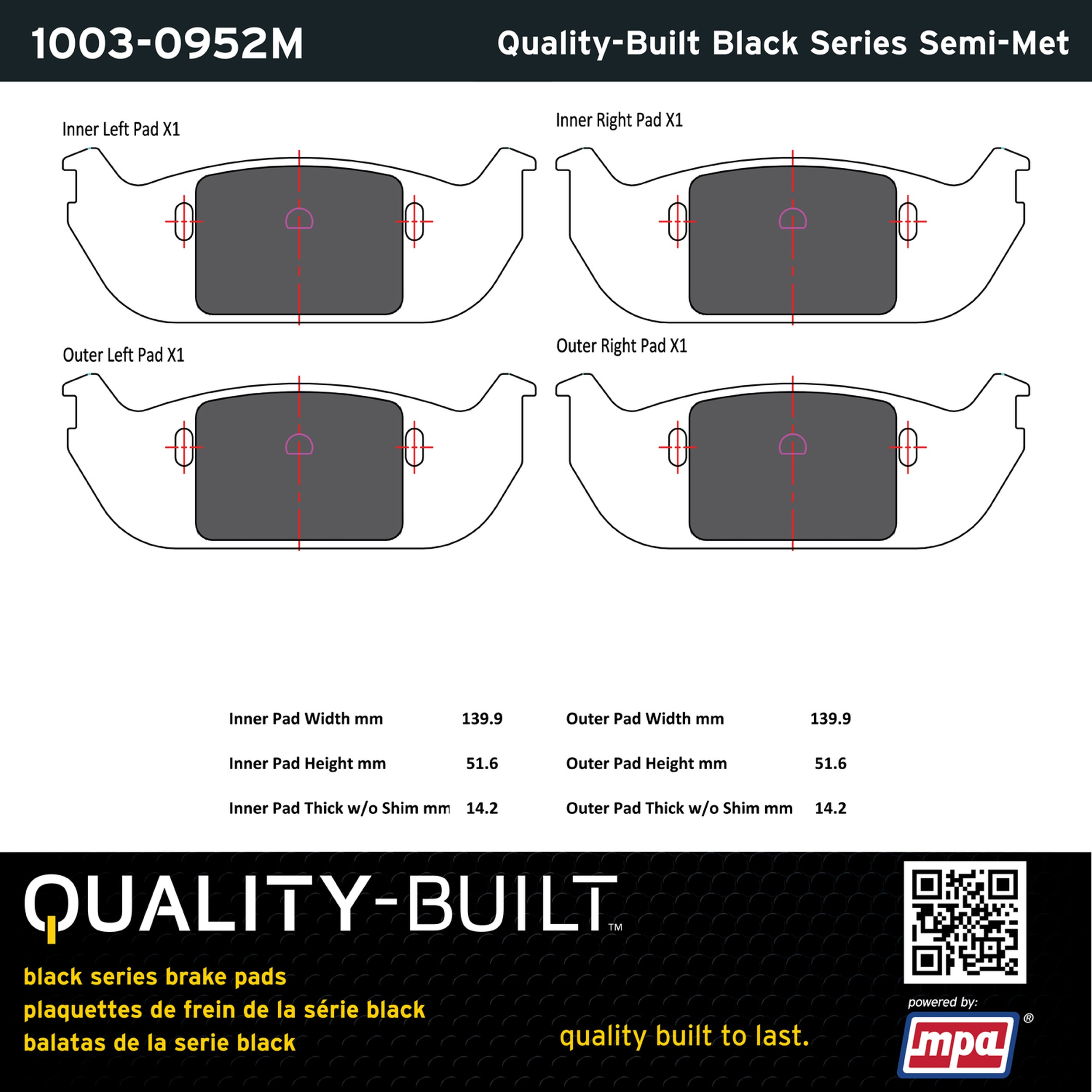 - Quality-Built Black Series Brake Pads are the ultimate in brake pad performance, delivering smooth, reliable stopping with zero noise and low dust. Application-specific friction formulas take the guesswork out of pad selection while providing even, predictable pedal feel and fade-free stopping power across a wide thermal range. Black Series friction compounds are engineered for optimized brake system performance and improved stopping power.