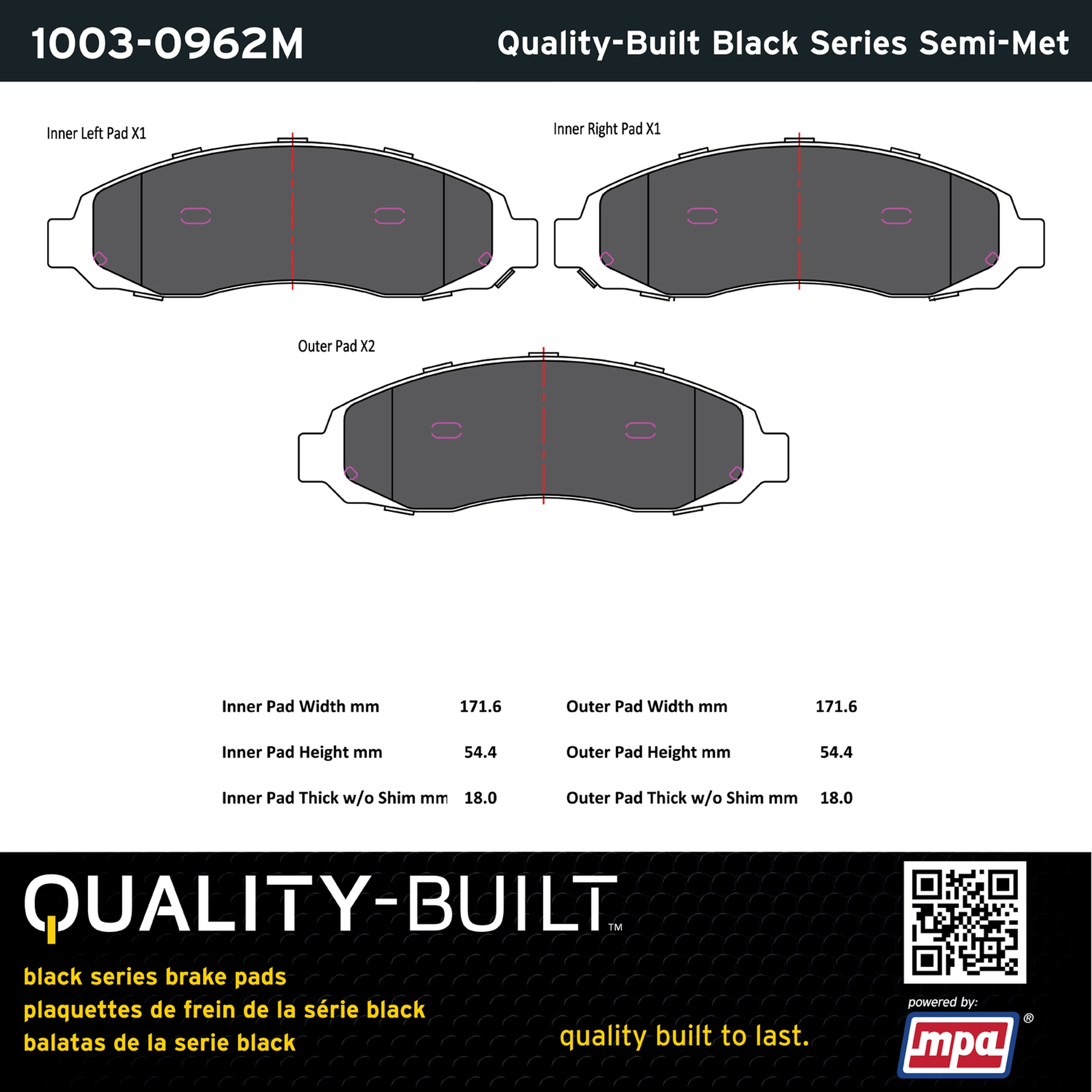 - Quality-Built Black Series Semi-Metallic Brake Pads w/ Hardware